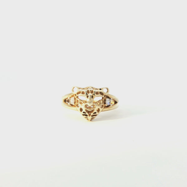 Gold Leopard Head Ring with Diamond Accents