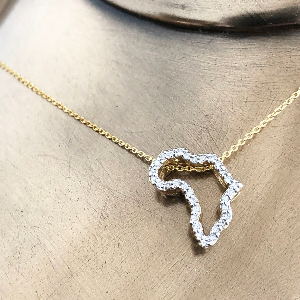 Diamond Studded 9-carat Gold Africa Pendant