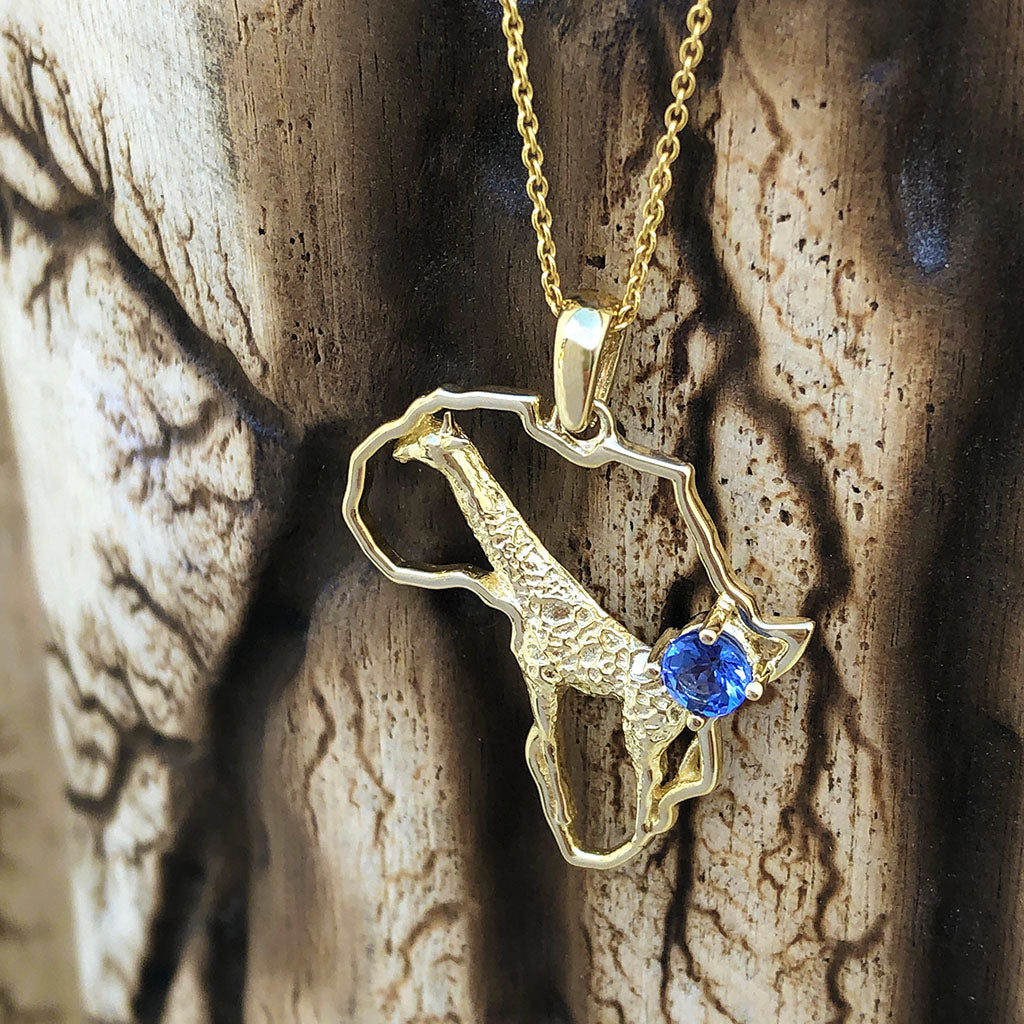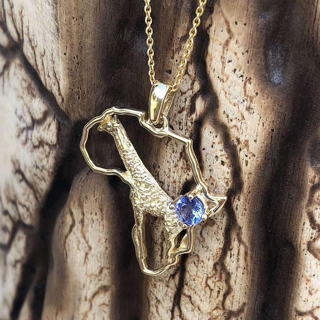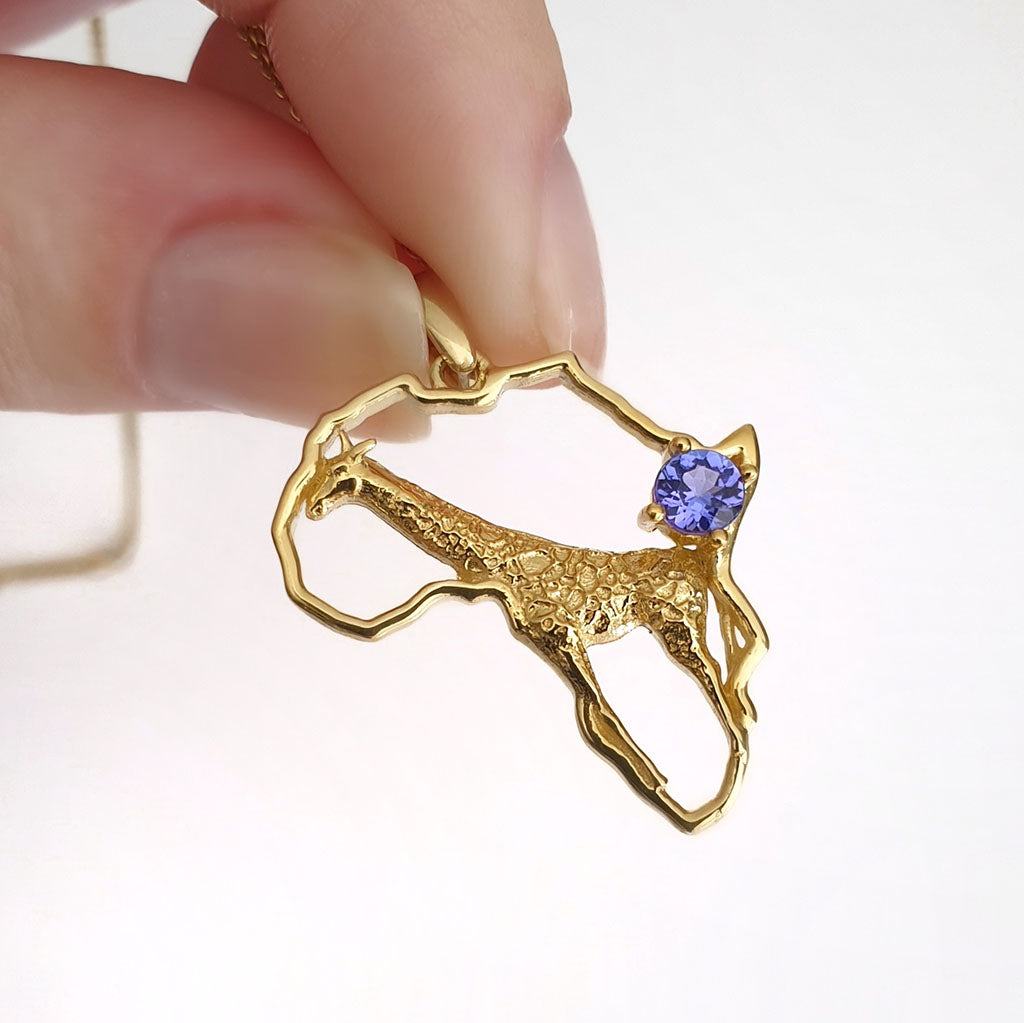 Africa Map Giraffe Pendant Set with Tanzanite