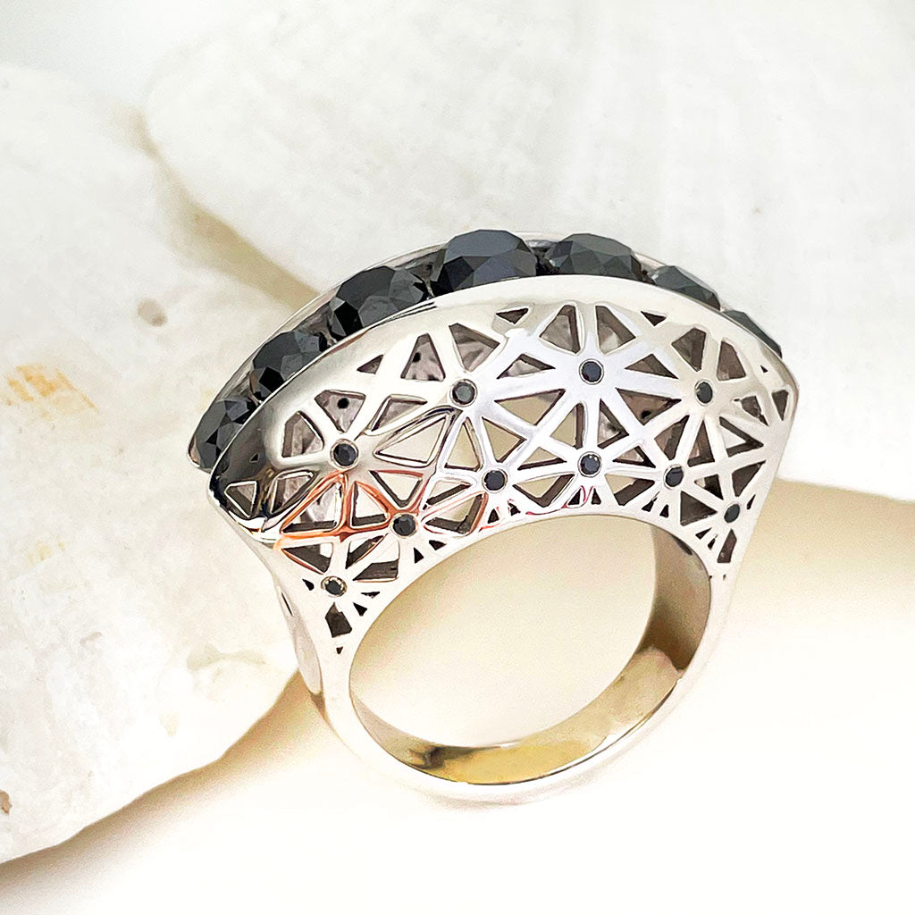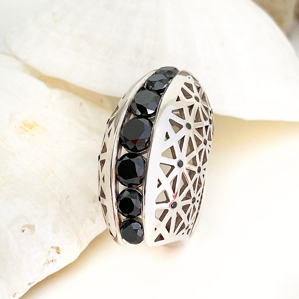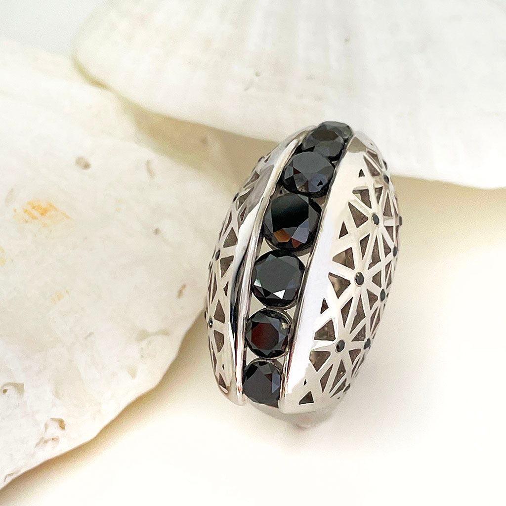 Afrogem All Black Diamond Raised Pattern Statement Ring