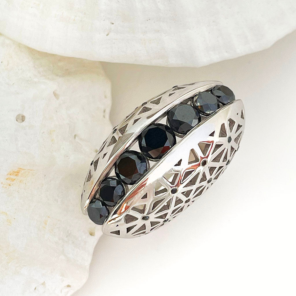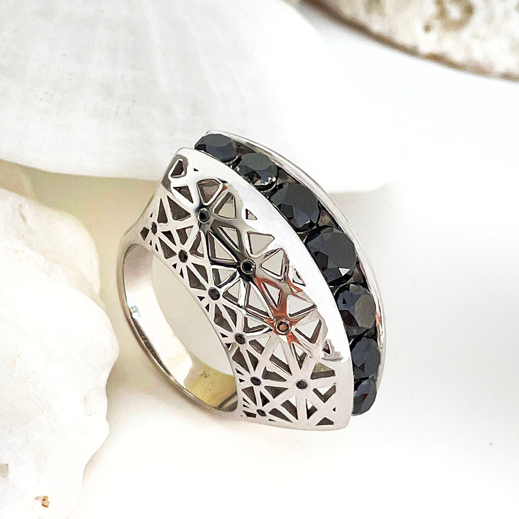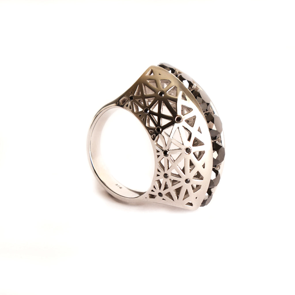 Afrogem All Black Diamond Raised Pattern Statement Ring