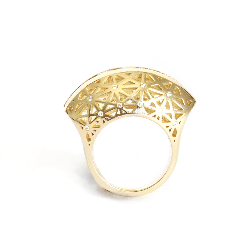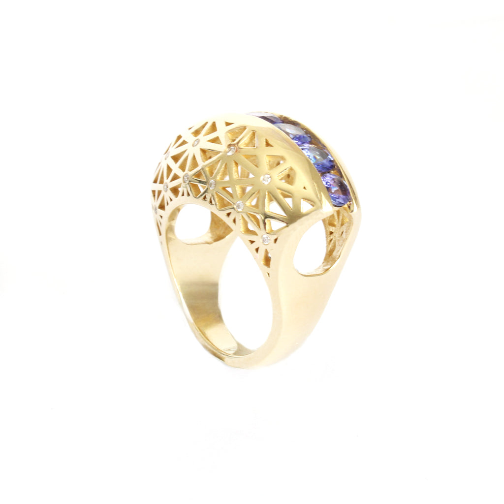Afrogem Tanzanite And Diamond Raised Pattern Statement Ring in Yellow Gold