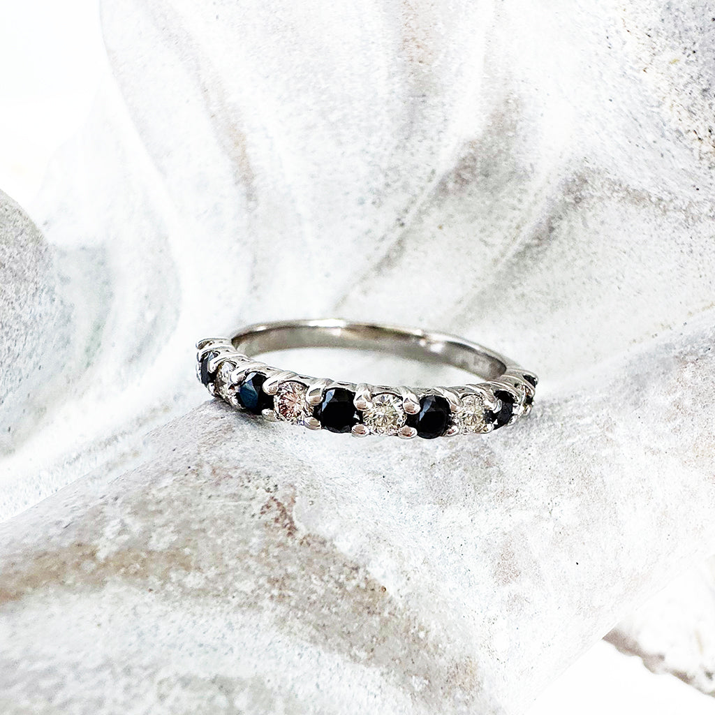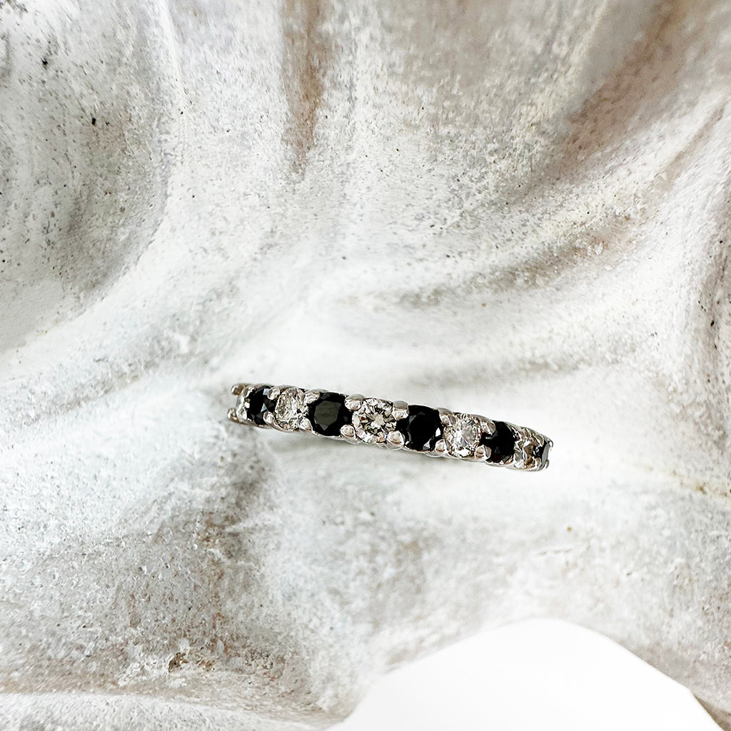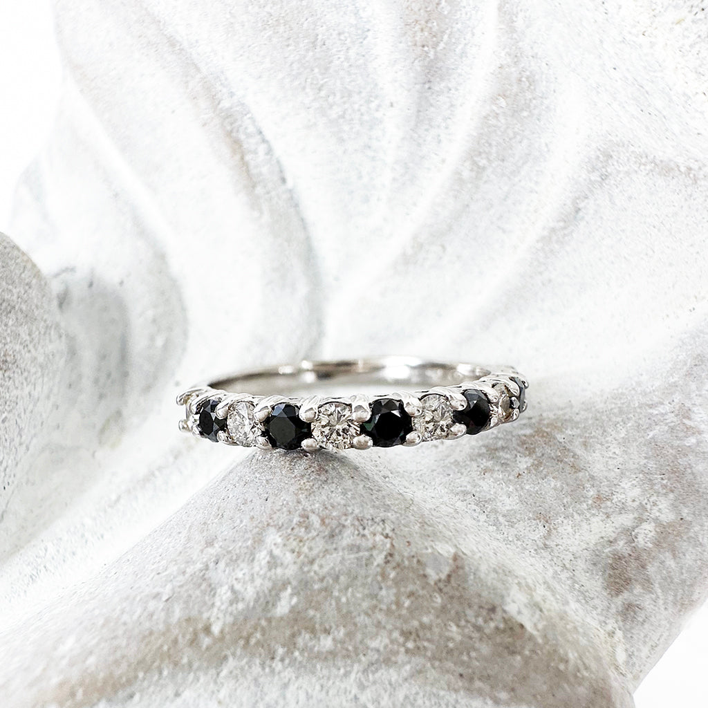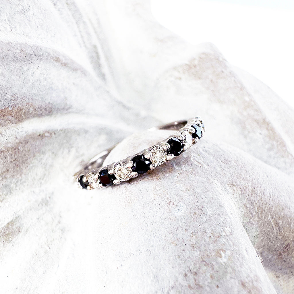 Alternating Black and White Diamond Eternity Styled White Gold Ring