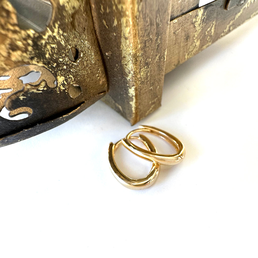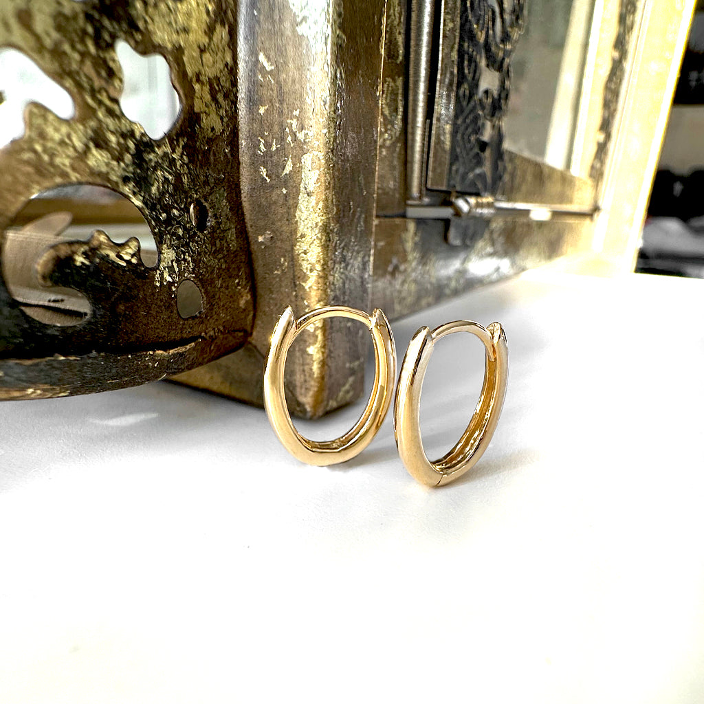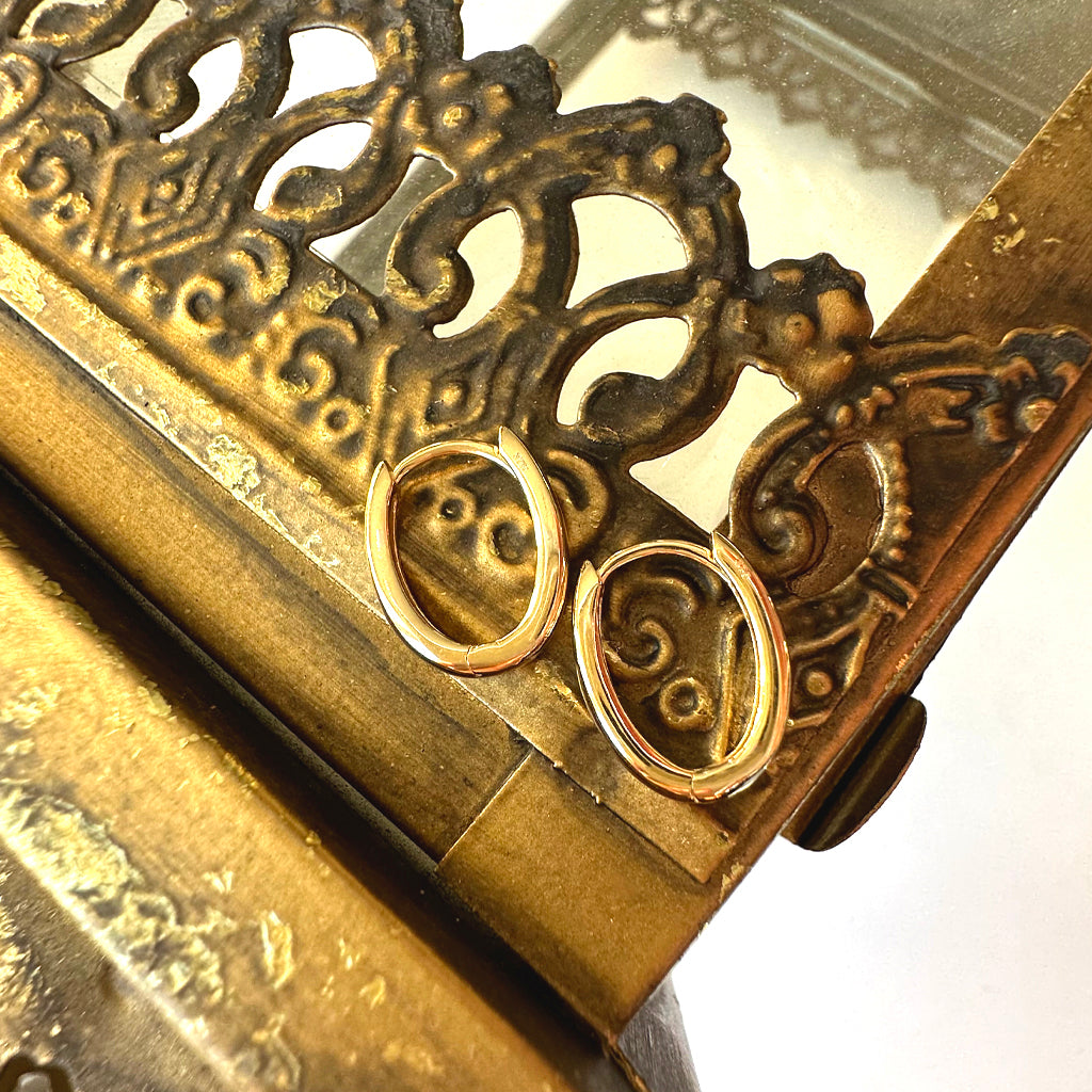 Gold hoop earrings encapsulate the soul of luxurious minimalism. They're the perfect elegant style choice that crosses from day to night with ease, making them an everyday indulgence. the angular design of these hoops create an oval shape, making them stand out from traditional styles.
