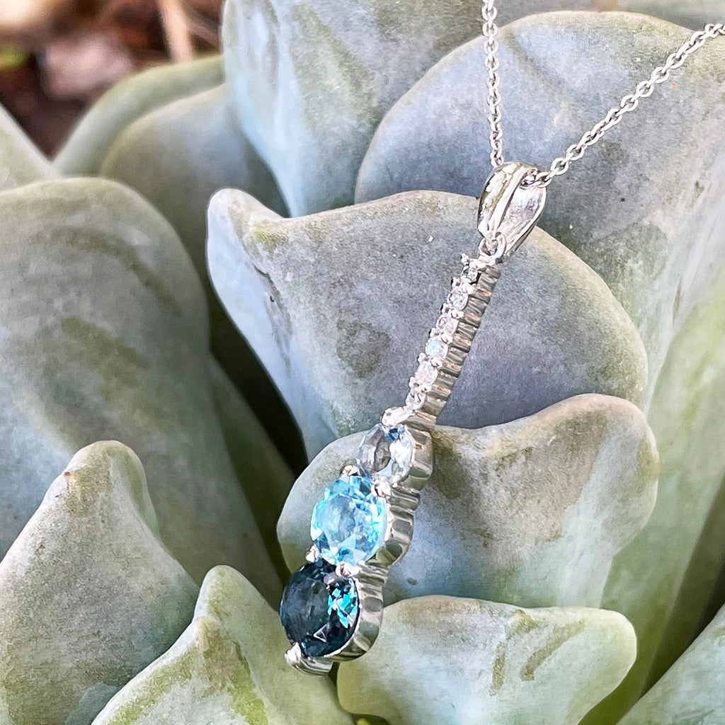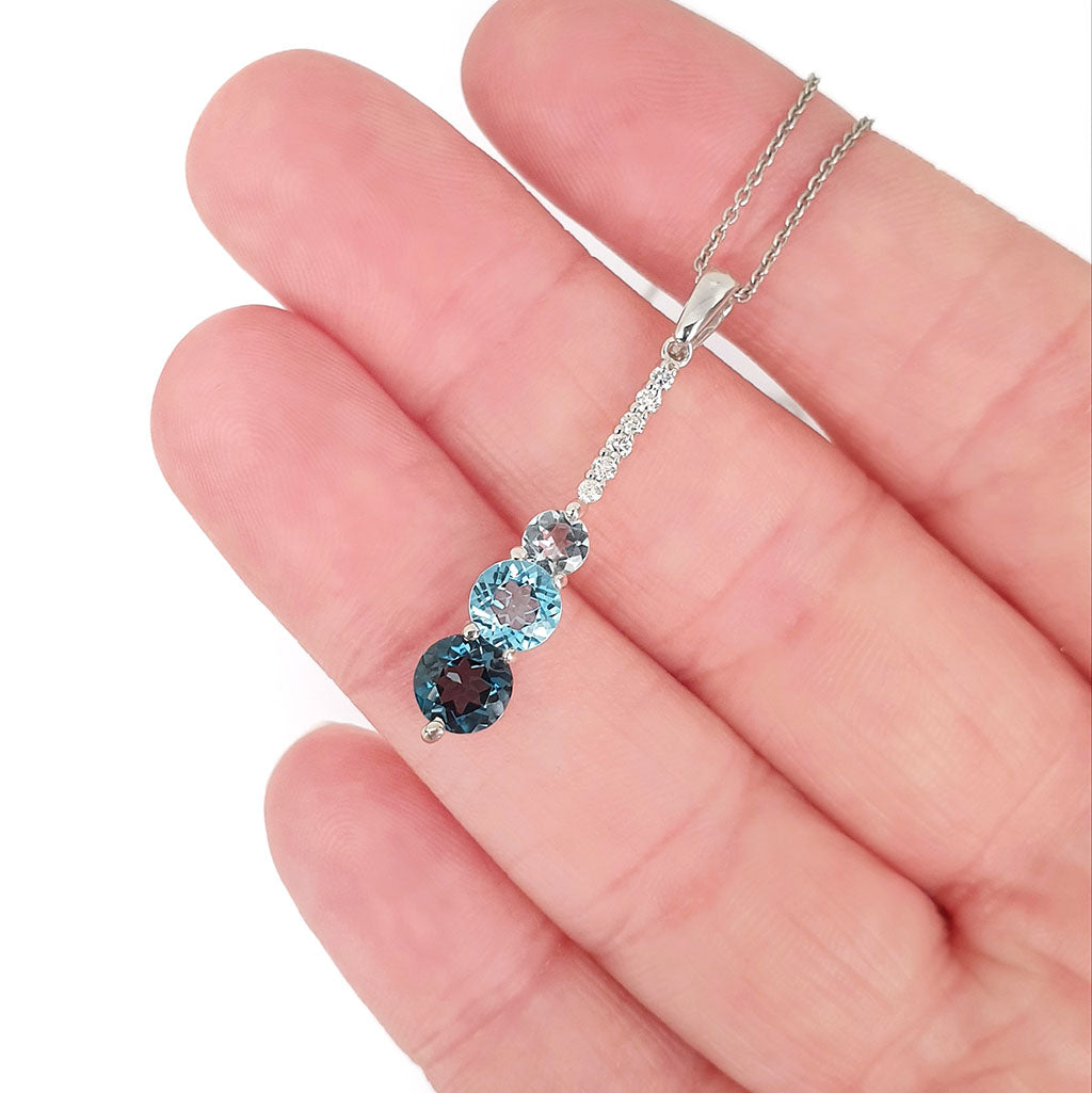 Aquamarine, Topaz and Six Diamond Drop Pendant