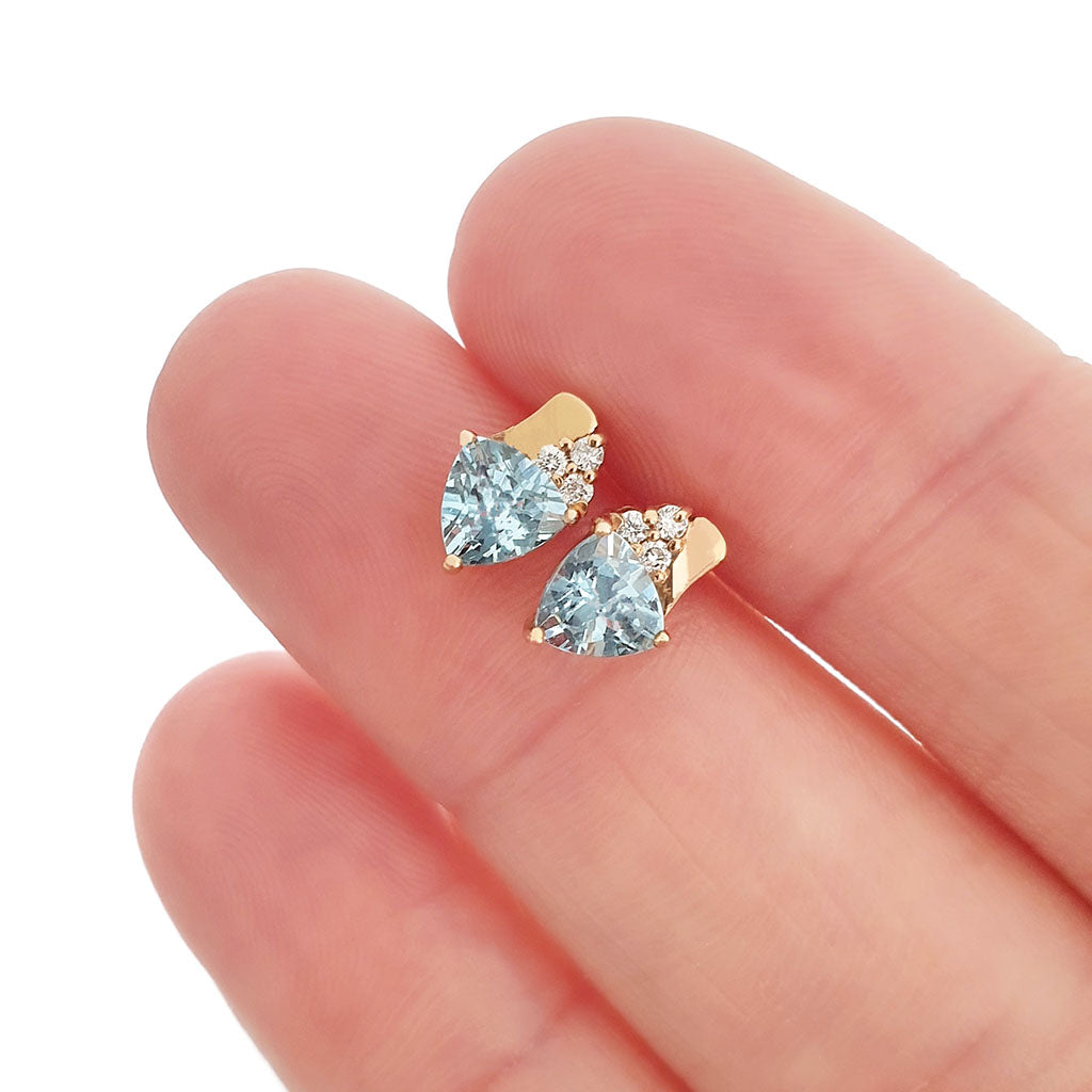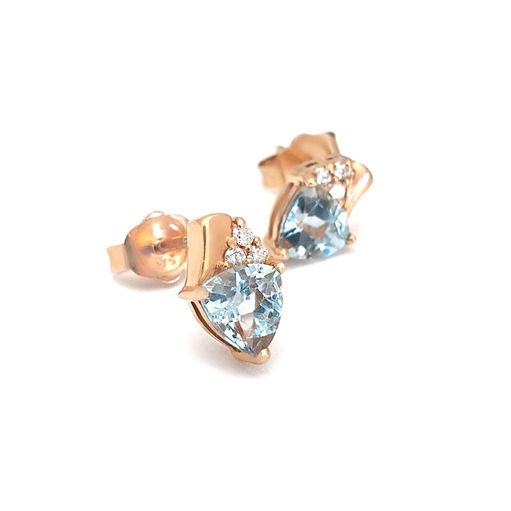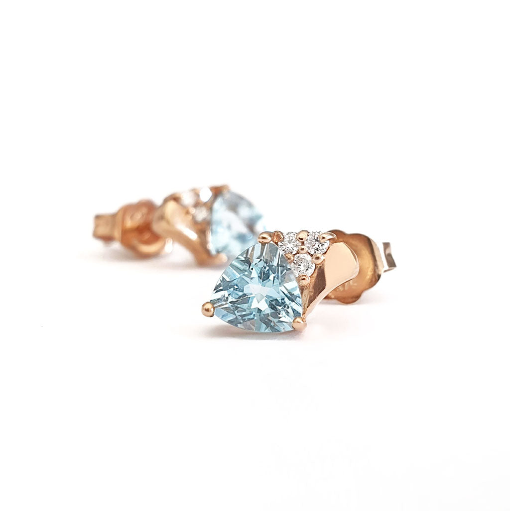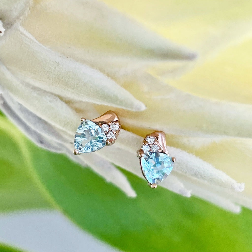 Trilliant Aquamarine Rose Gold Studs with Accent Diamonds