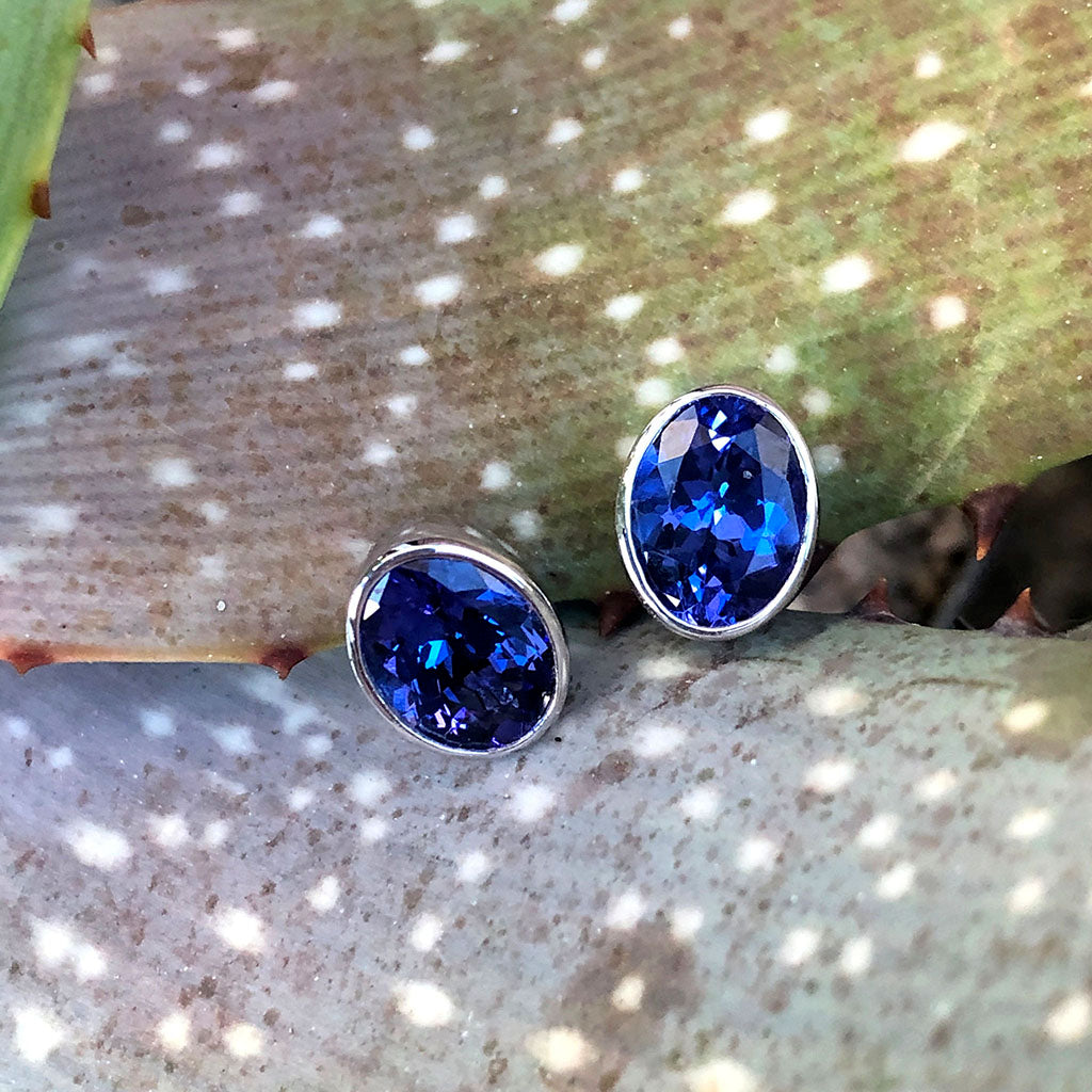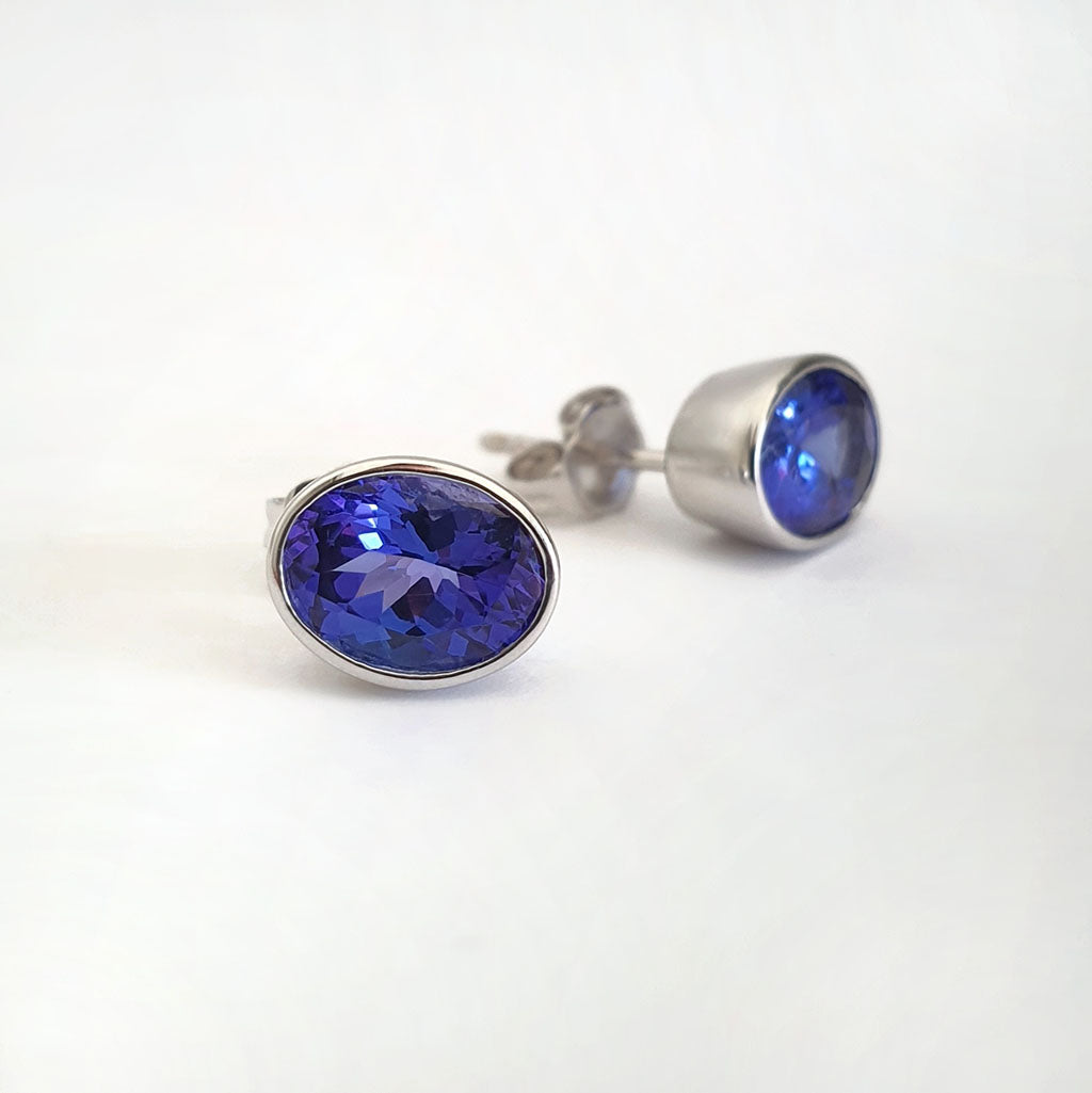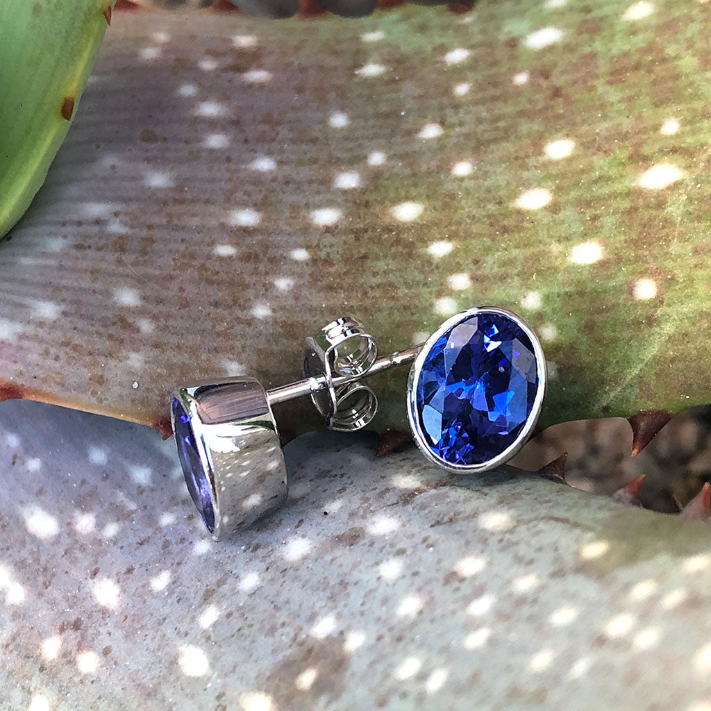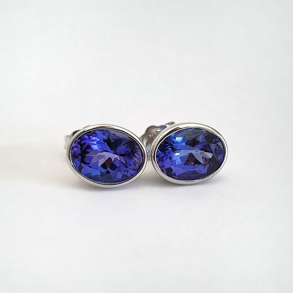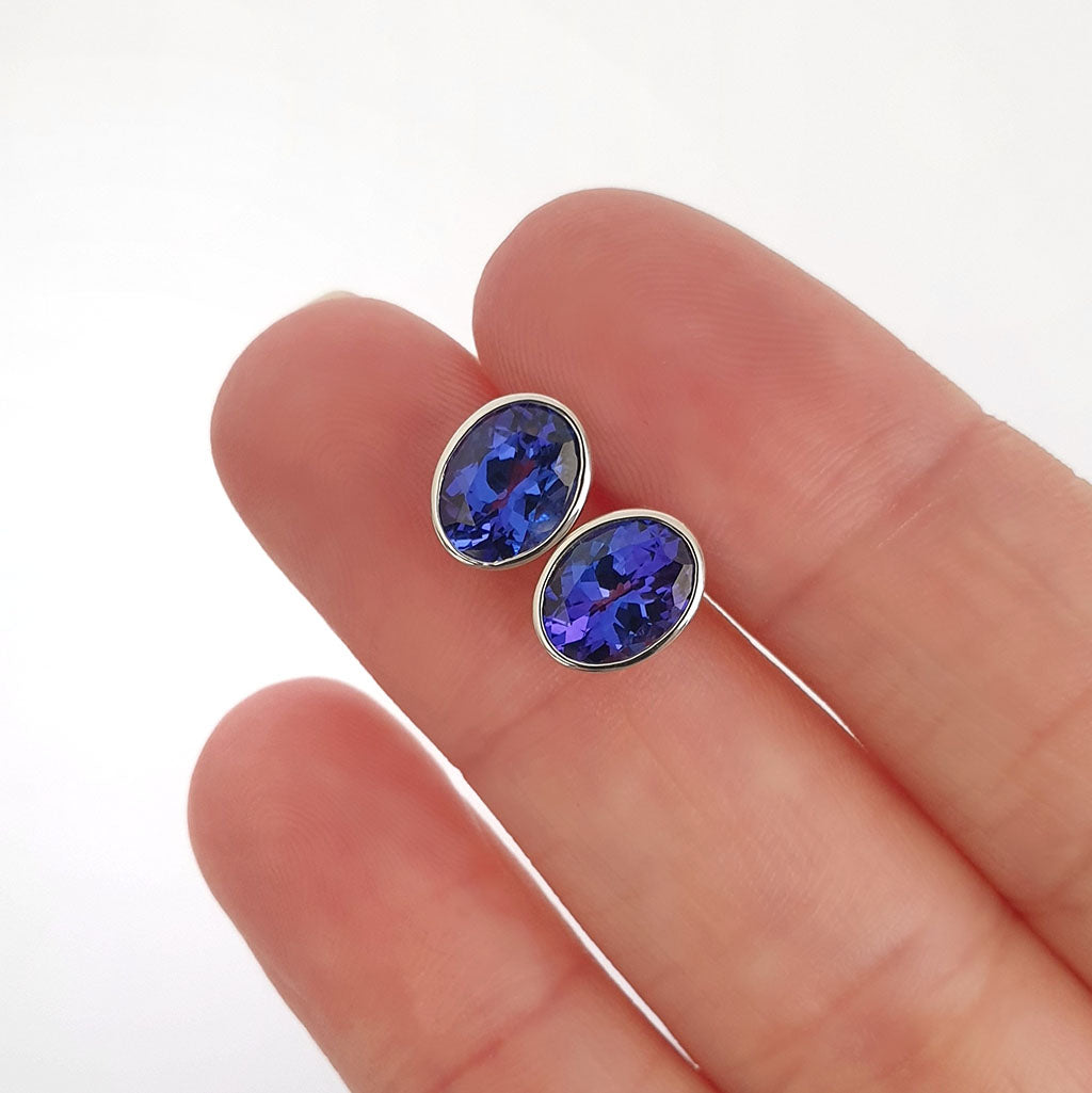 Gorgeous Bezel Set Oval Cut Tanzanite Studs