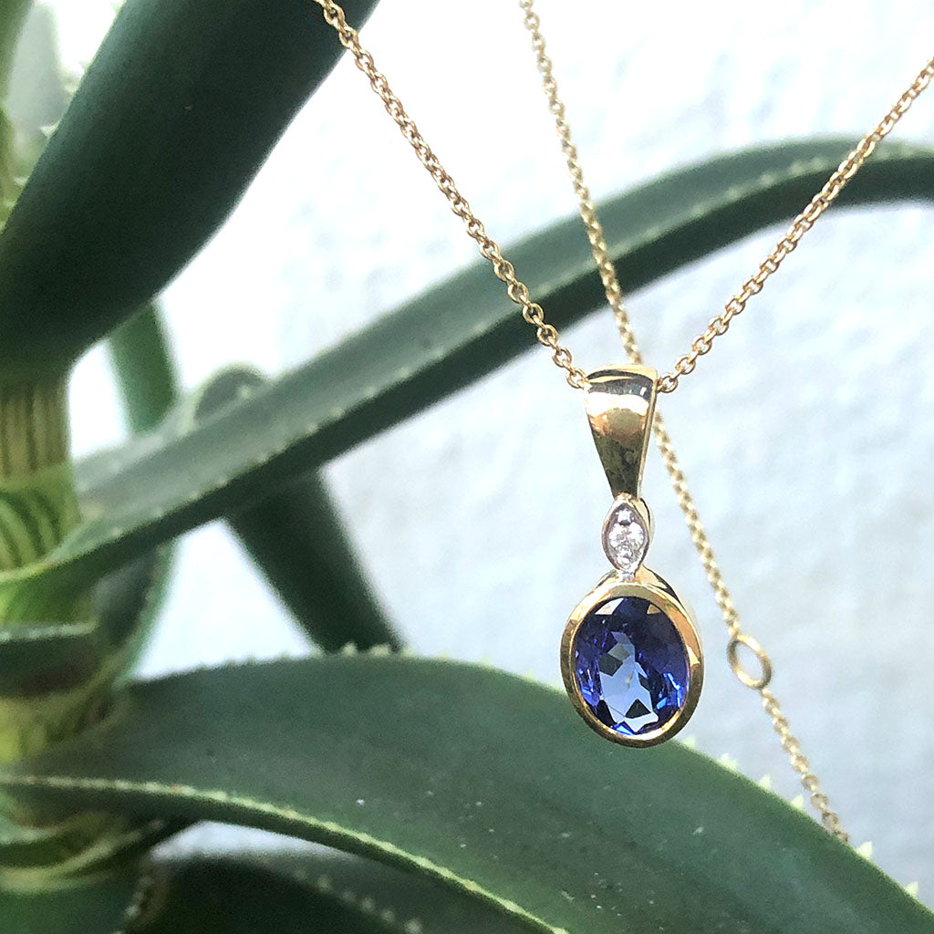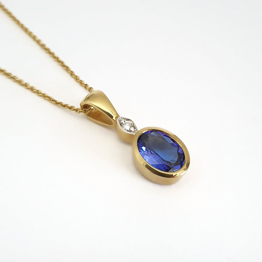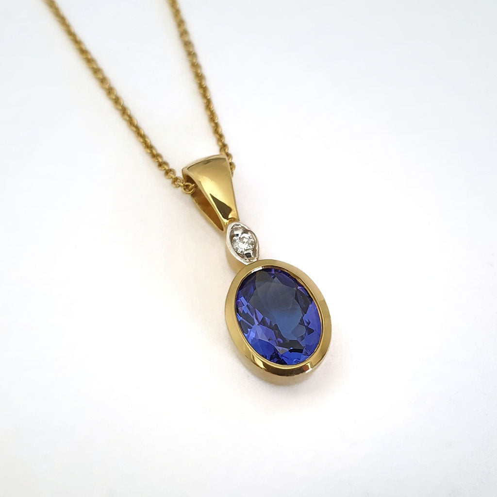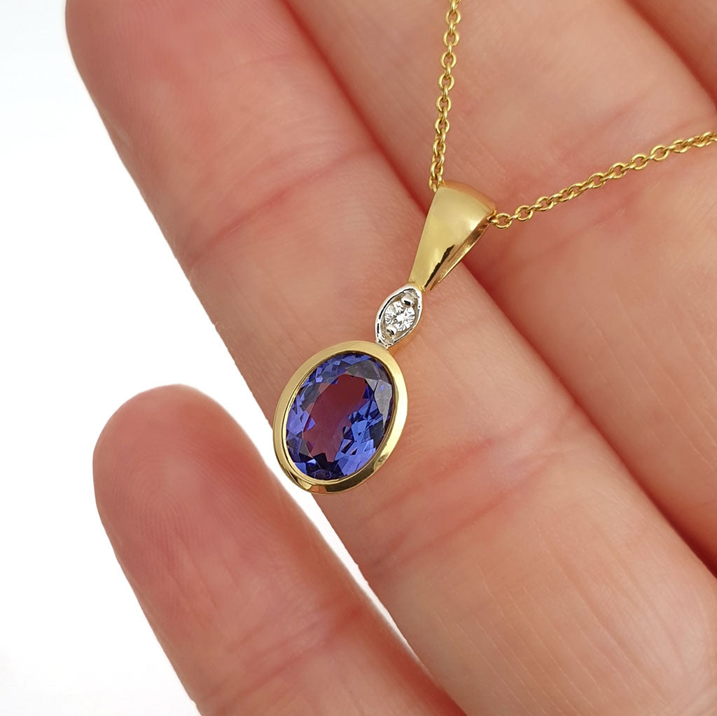 Bezel Setting Oval Tanzanite and Diamond Pendant