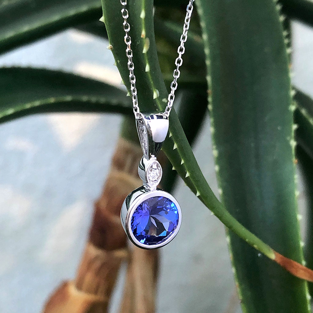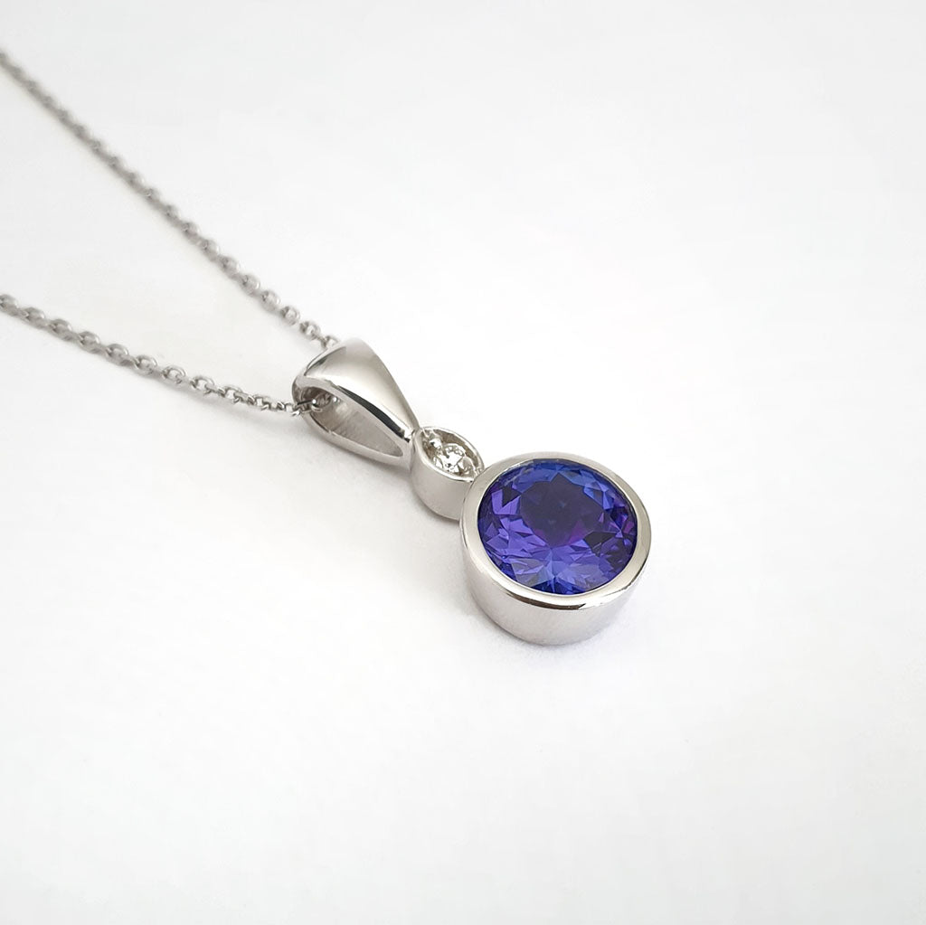 Bezel Set Round Cut Tanzanite and Diamond Pendant