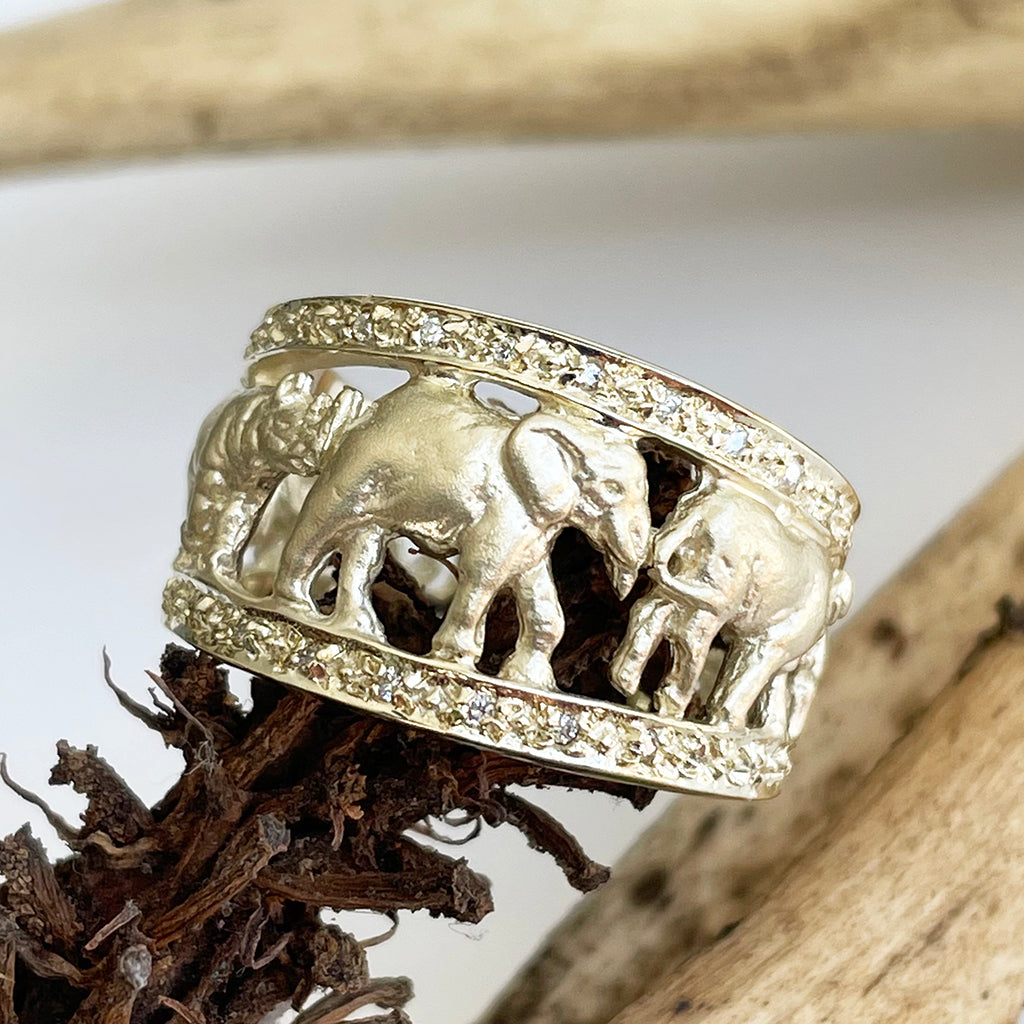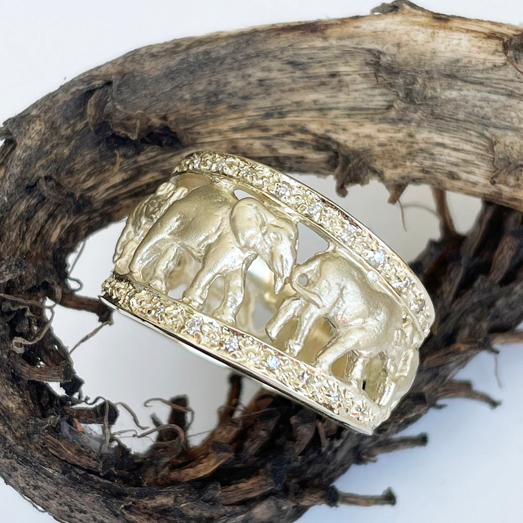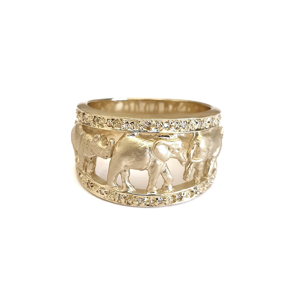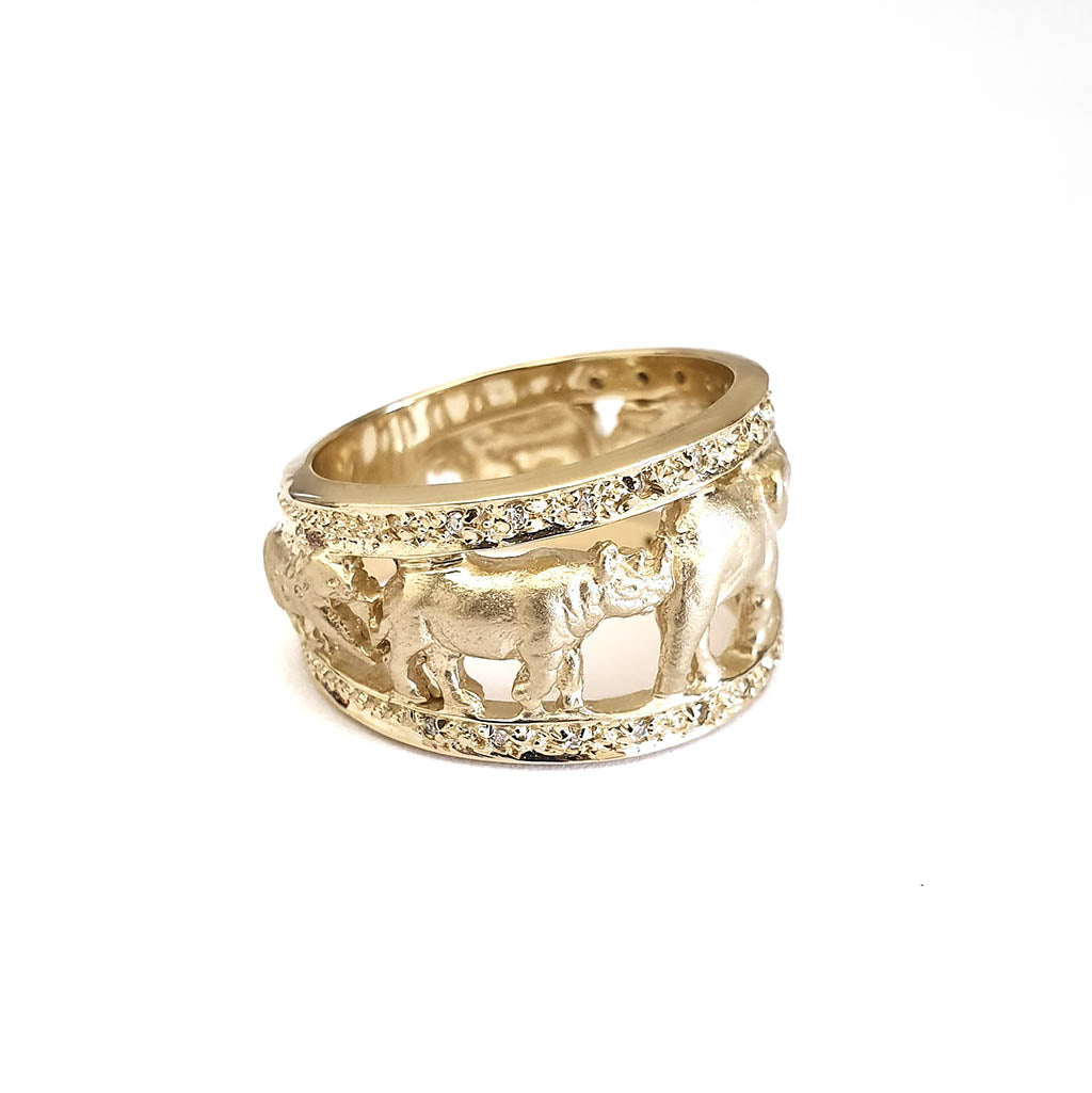 Big 5 Yellow Gold Relief Ring with White Diamond Borders