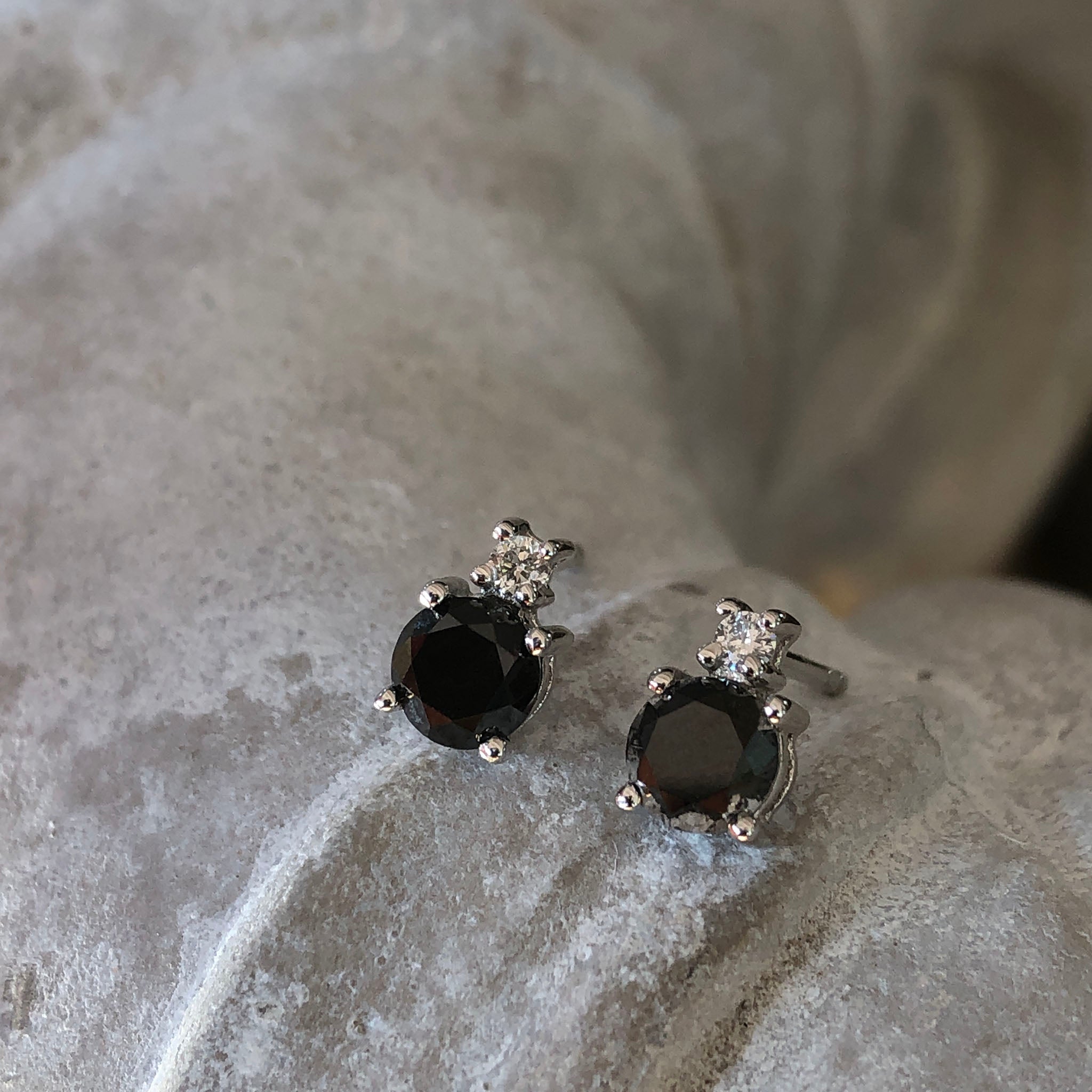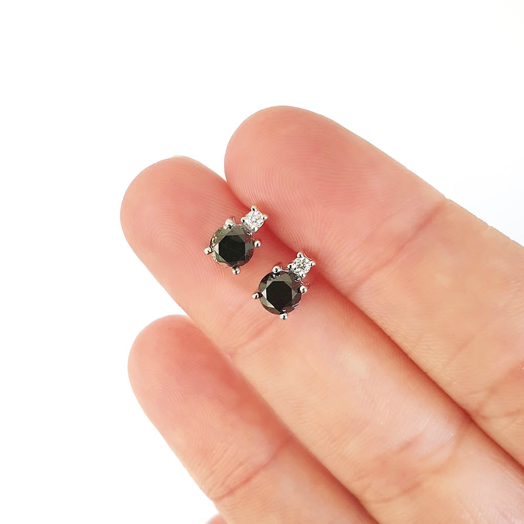 Black Diamond Studs with Petite White Diamond accent