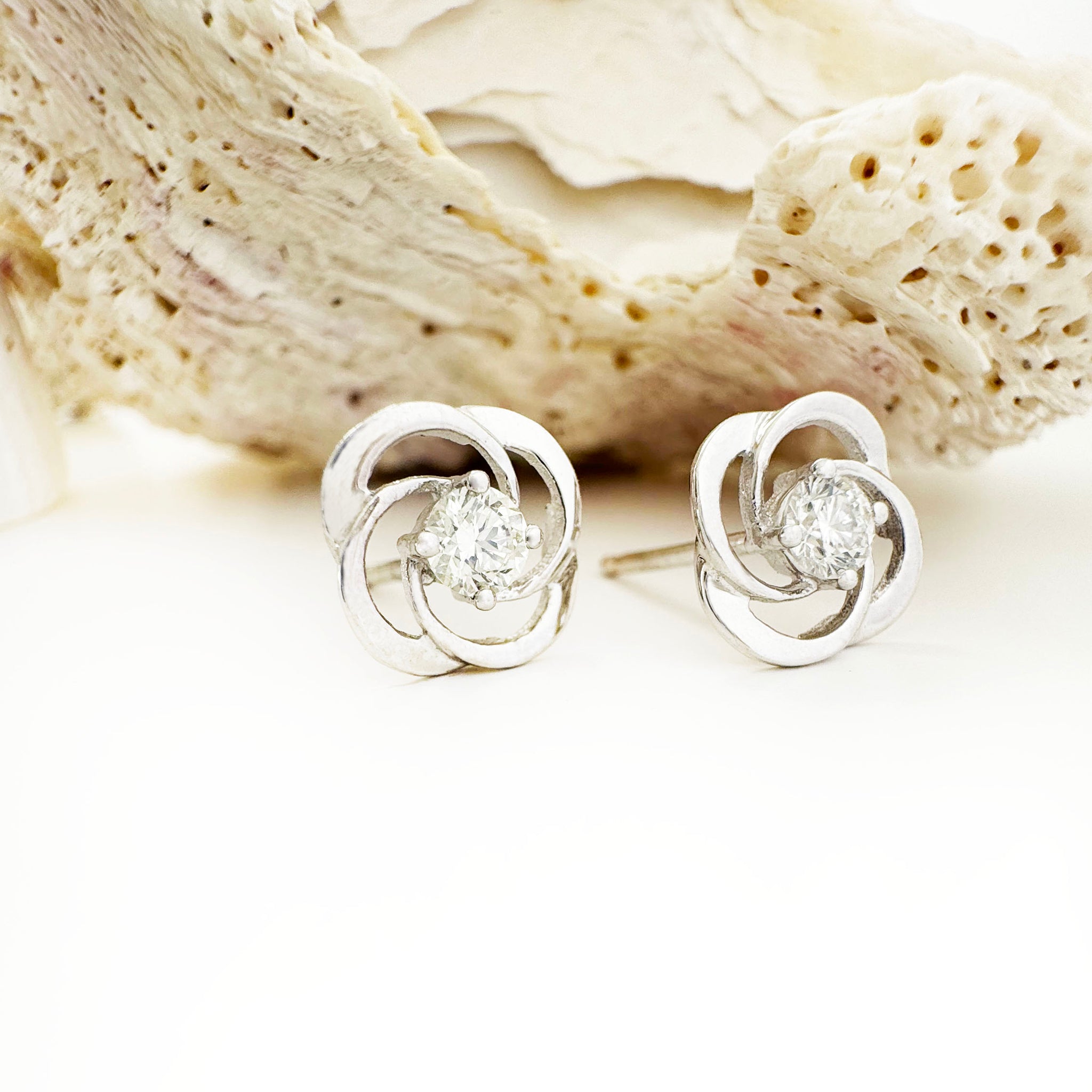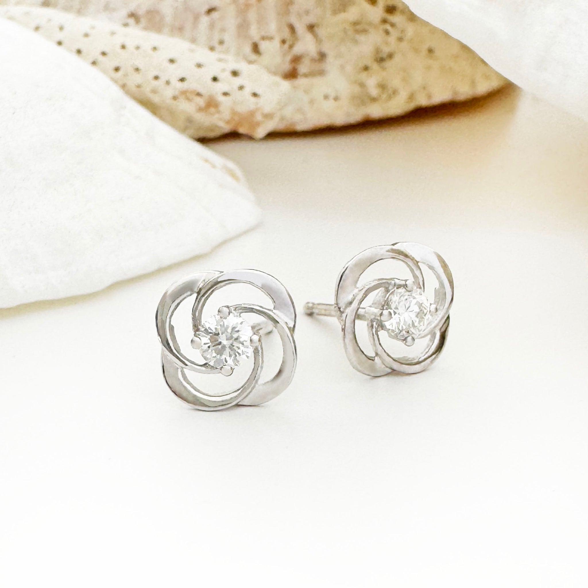 Celtic Twist White Diamond Stud Earrings