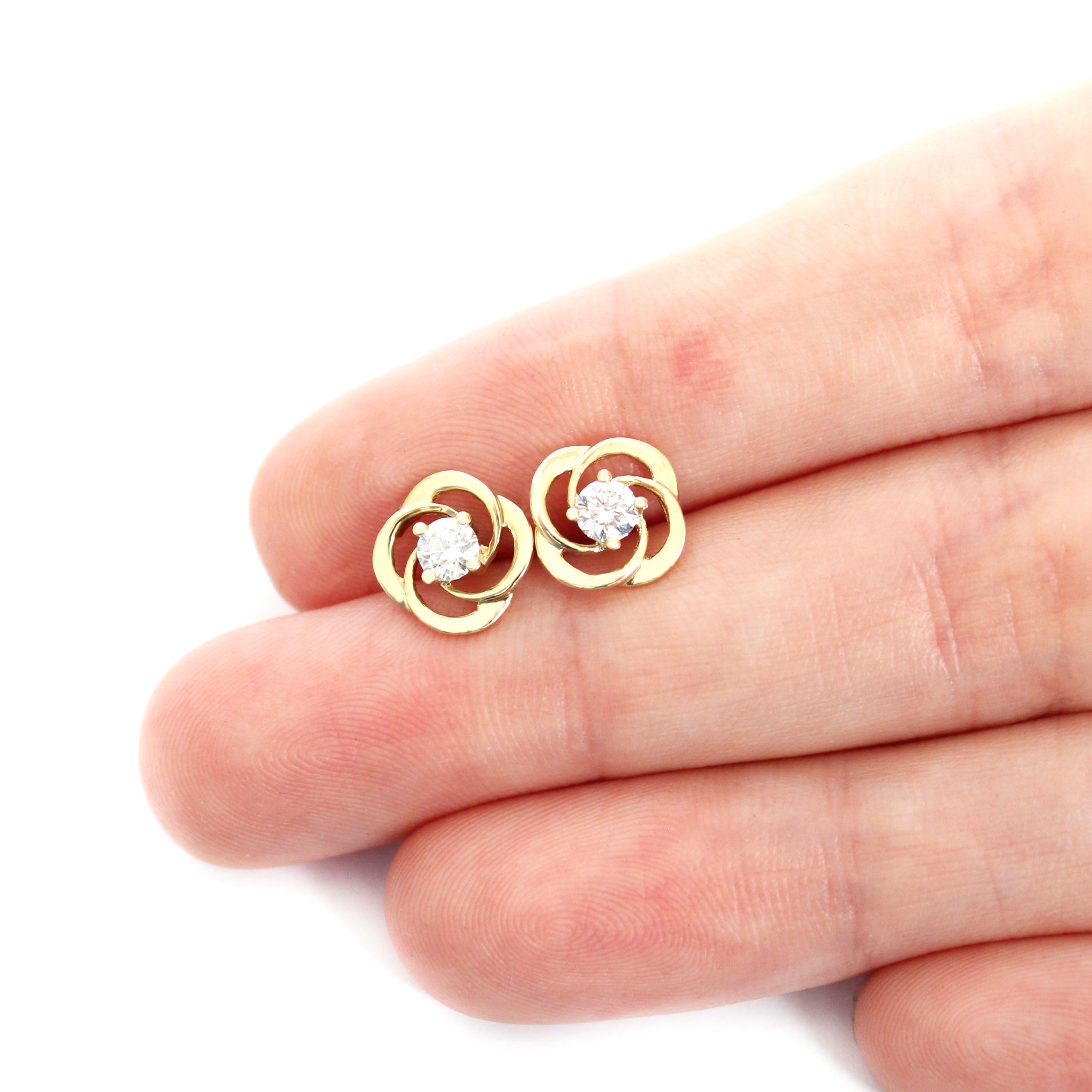 Celtic Twist White Diamond Yellow Gold Stud Earrings