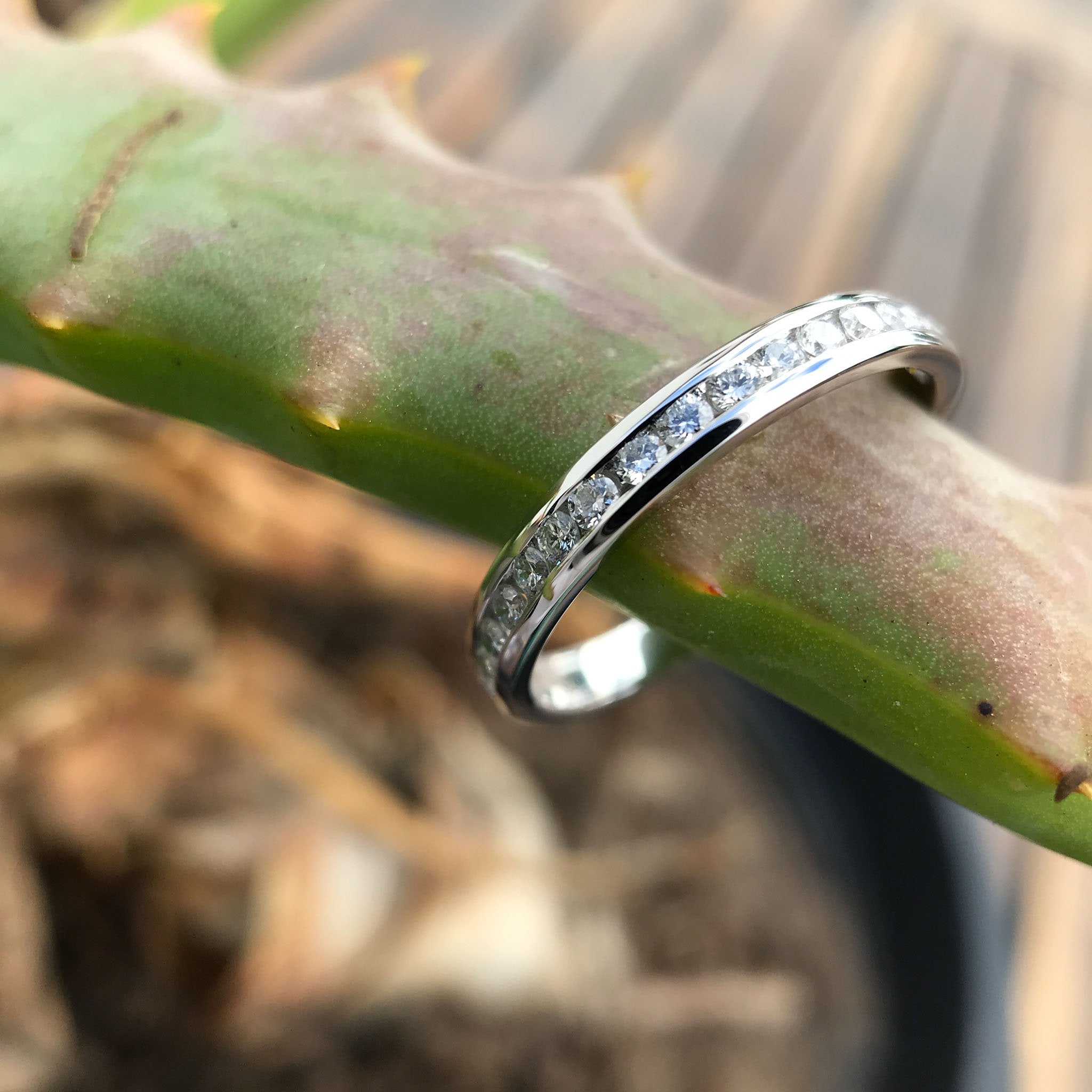 Channel Set Diamond and White Gold Half Eternity Ring