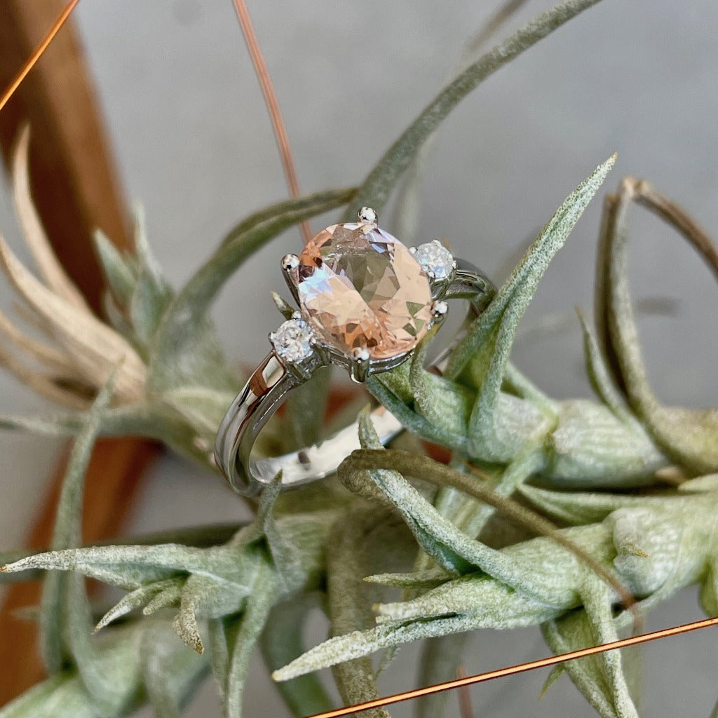 Divine Oval Morganite and Diamond Shoulder Highlight Ring