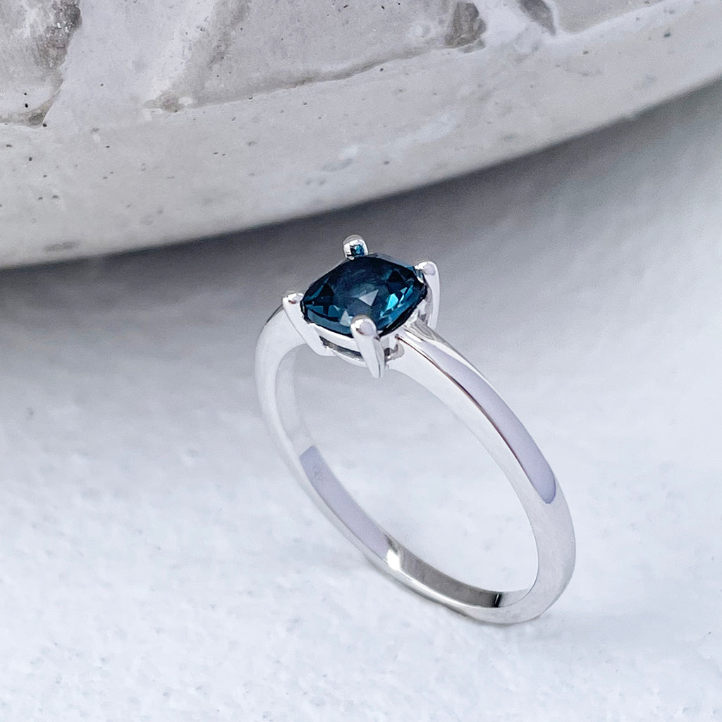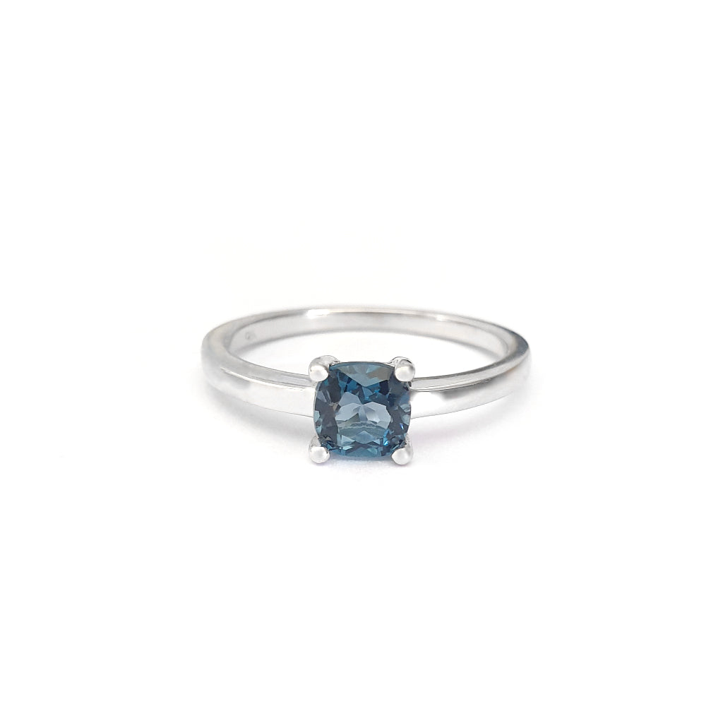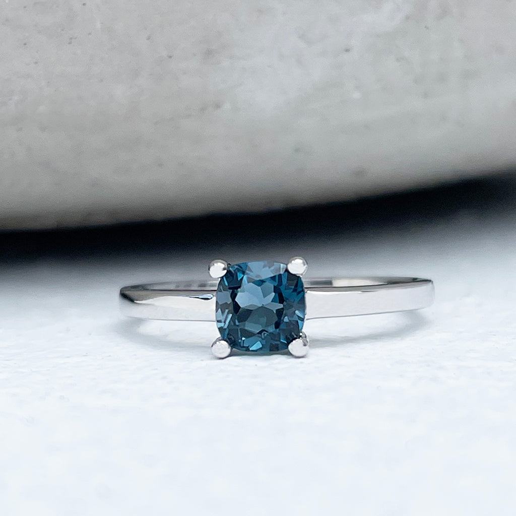 Classic Cushion Cut Solitaire London Blue Topaz Four Claw Ring