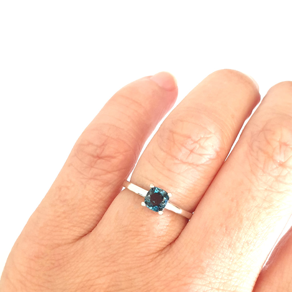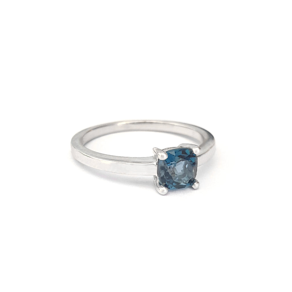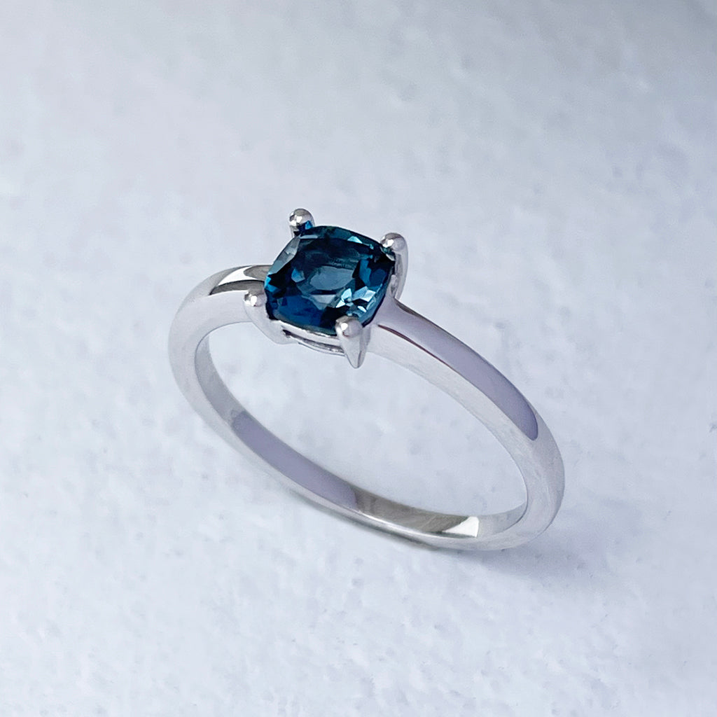 Classic Cushion Cut Solitaire London Blue Topaz Four Claw Ring