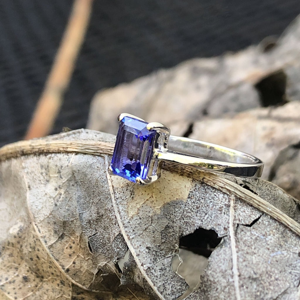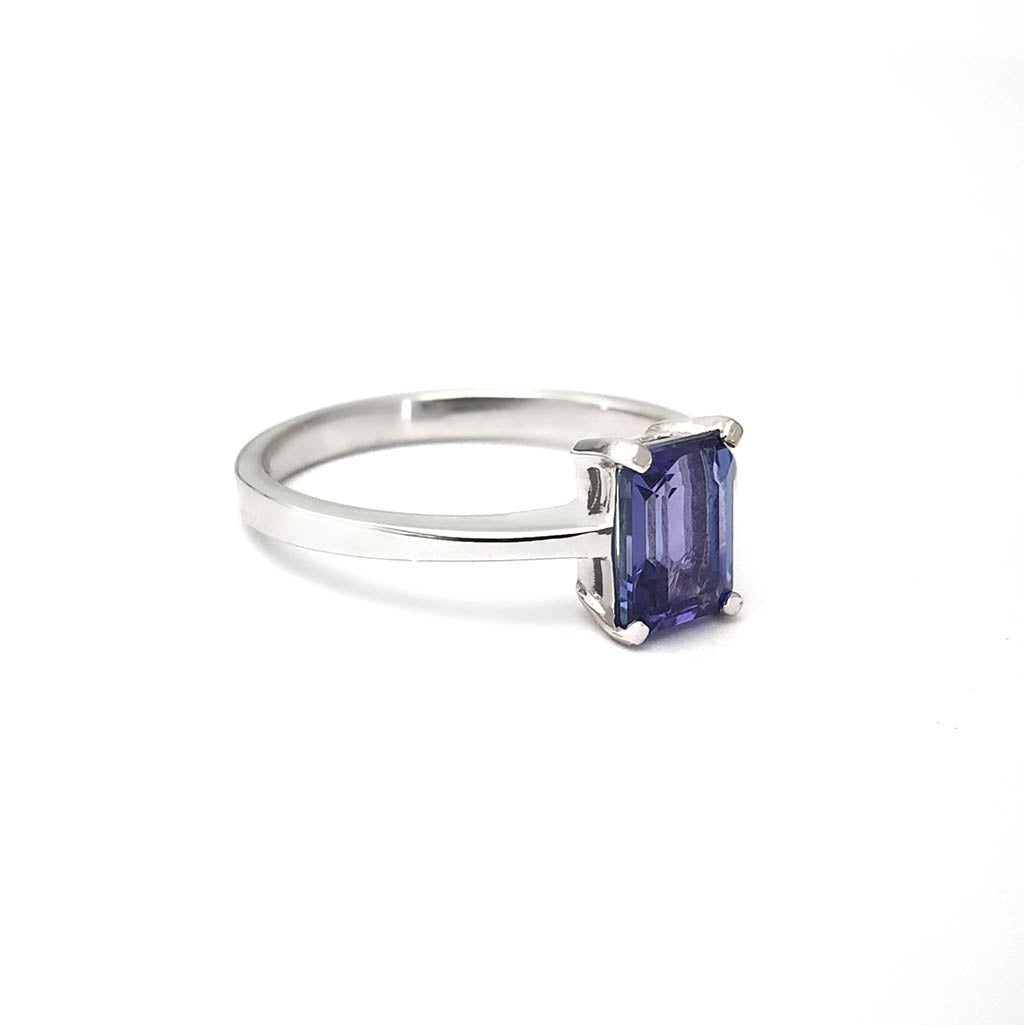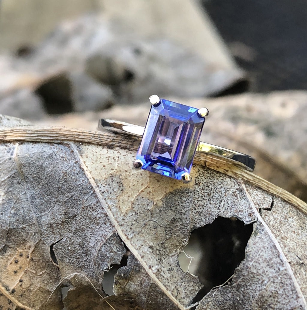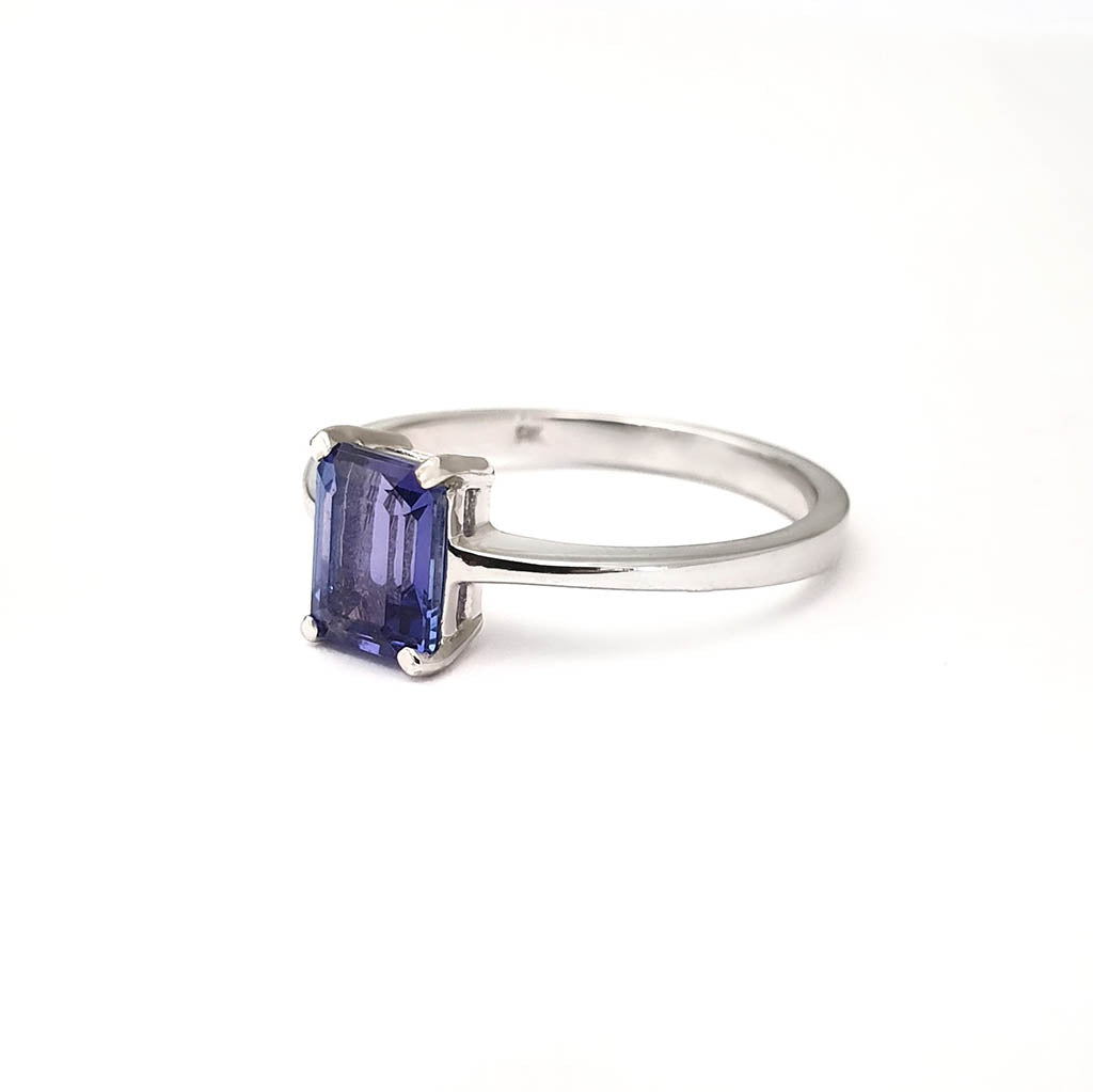 Three quintessential elements combine to create an elegant classic in this stunning solitaire ring: white gold, tanzanite, and a timeless emerald cut. The African gemstone brings a rarity to the ring  that makes this an heirloom piece. This solitaire will still look contemporary on the finger of your granddaughter.