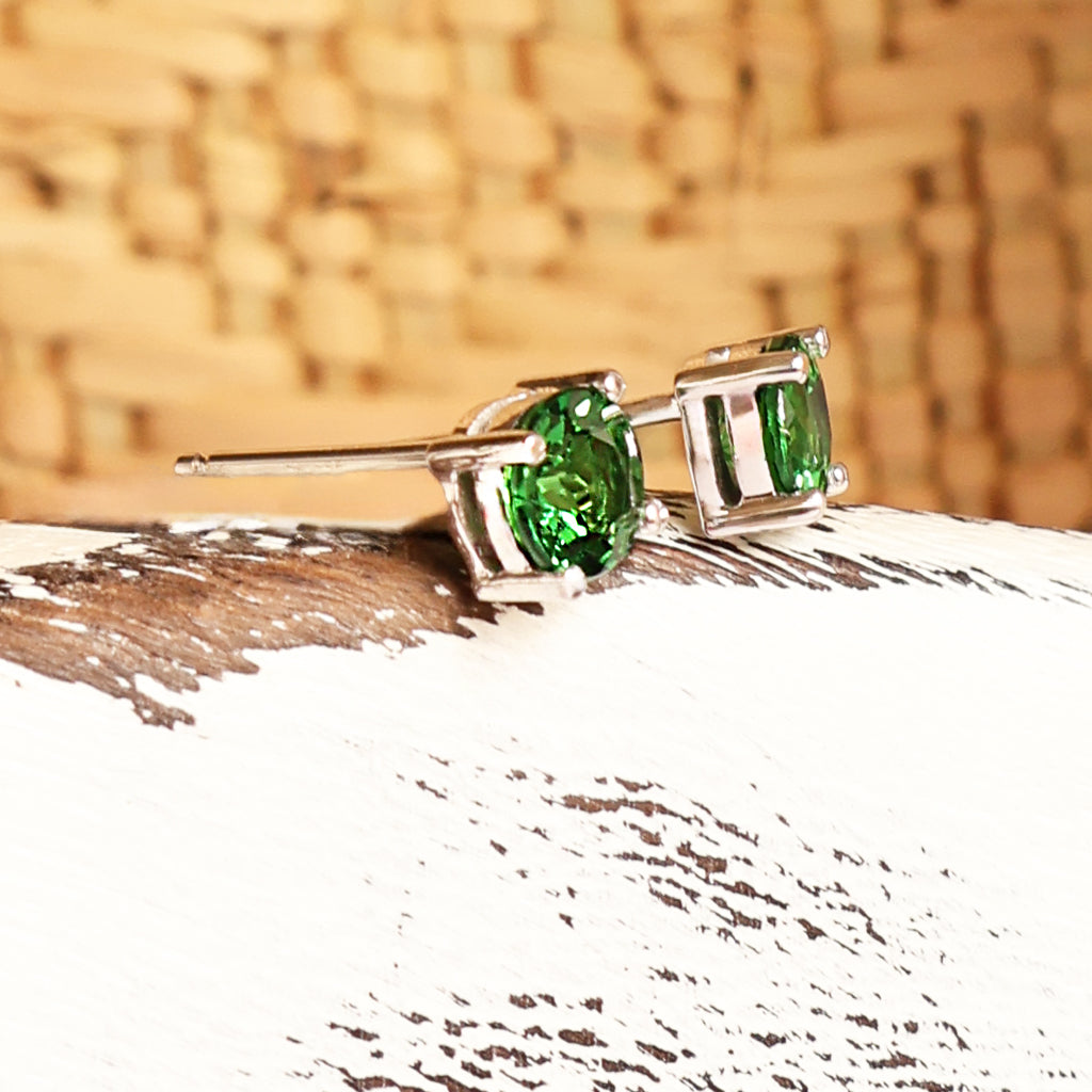 Classic Four Claw Tsavorite White Gold Studs