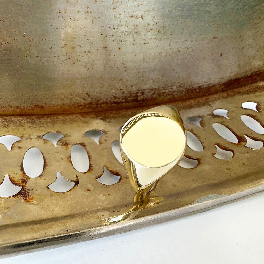 Classic Mens Oval Front Yellow Gold Signet Ring