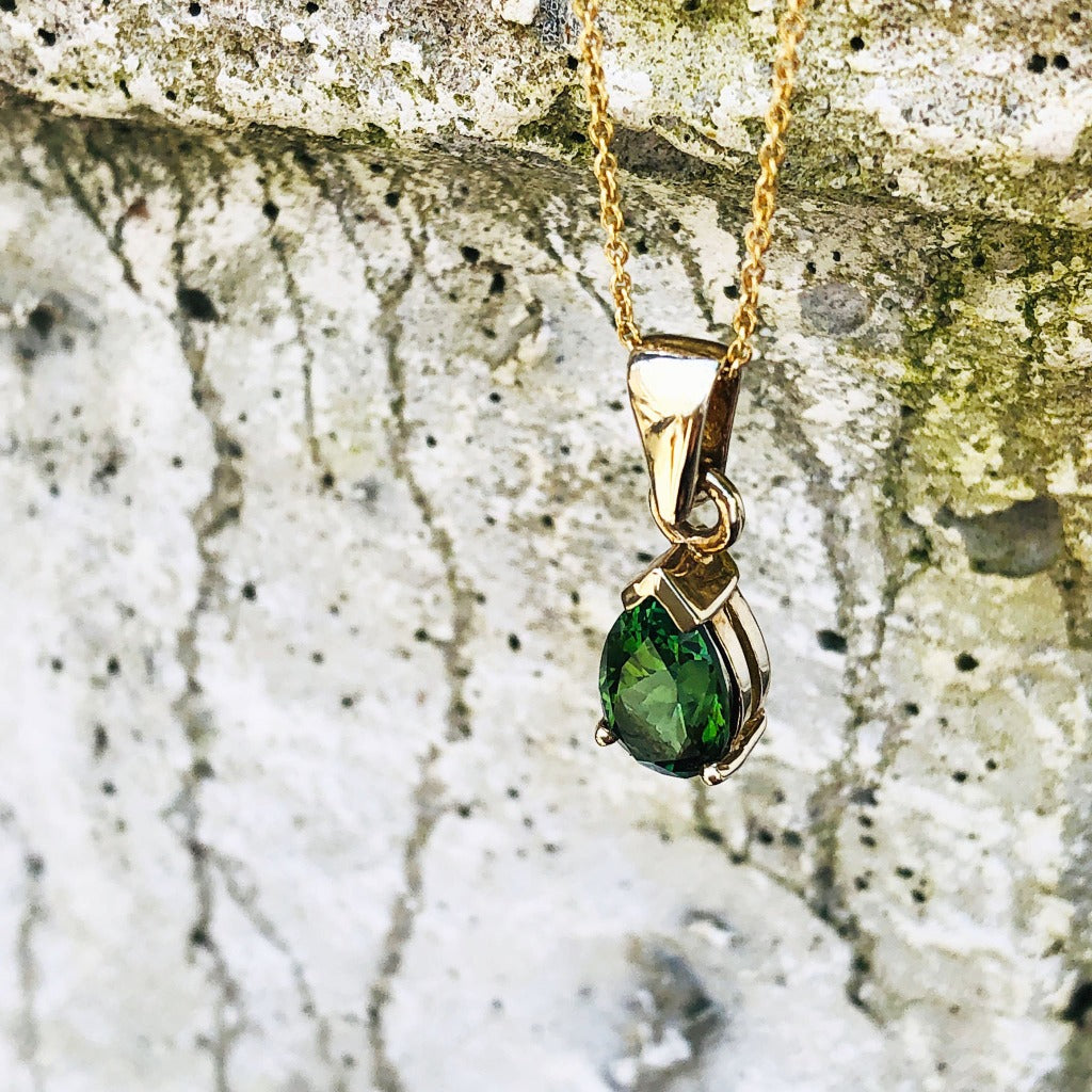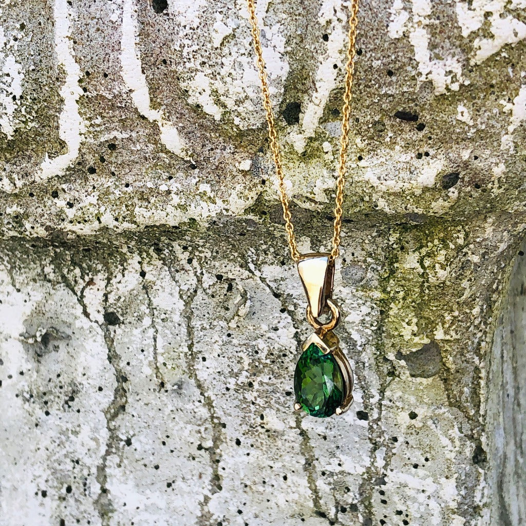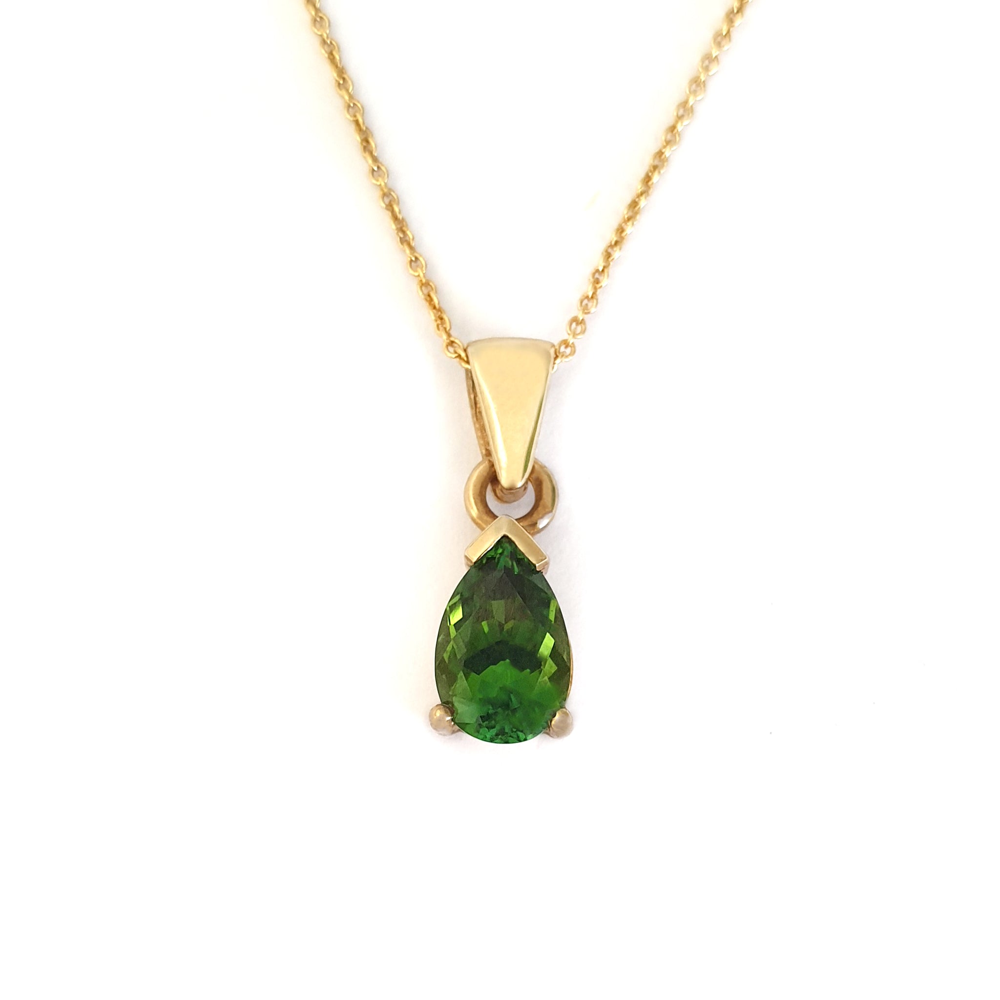 Classic Pear Cut Green Tourmaline and Yellow Gold Pendant