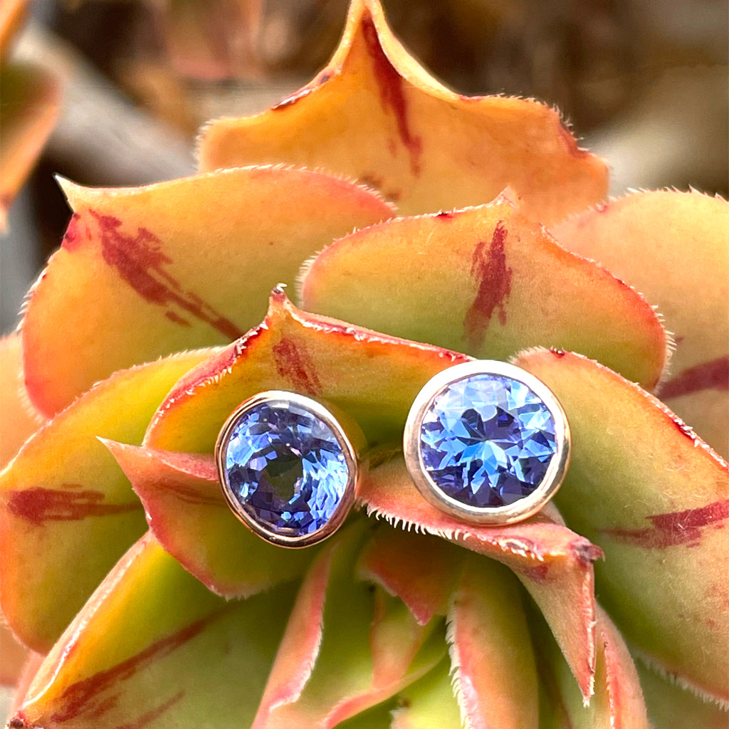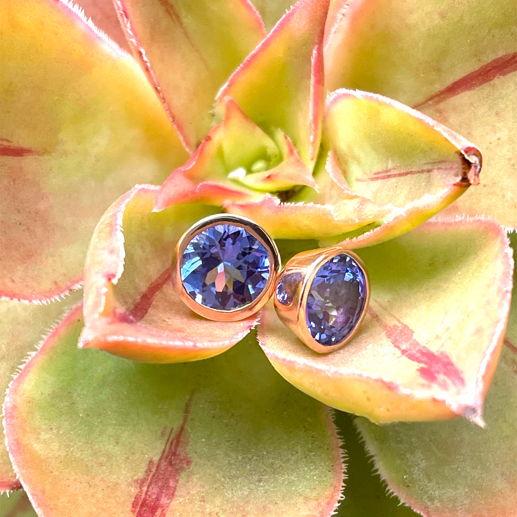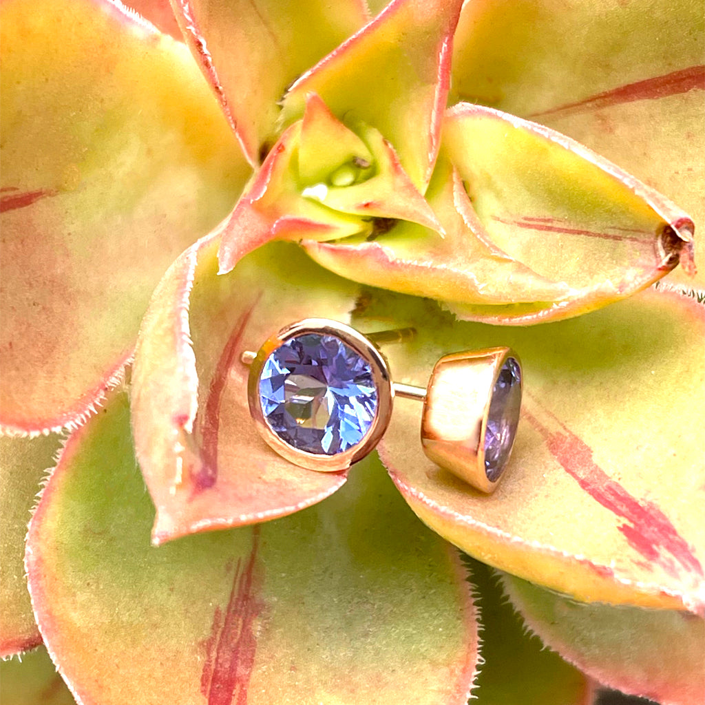 Classic Round Cut Tanzanite Rose Gold Bezel Set Studs