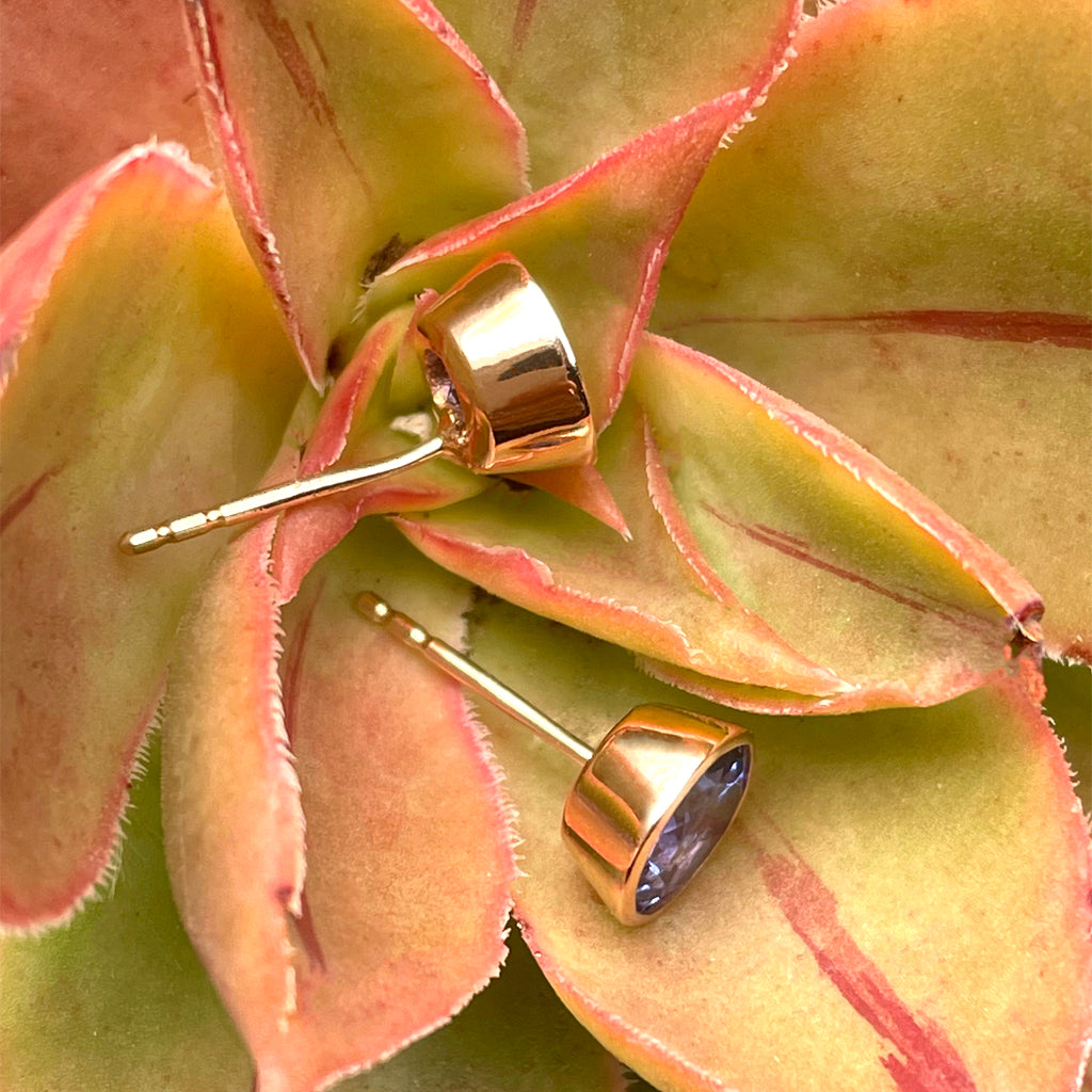 Bezel set tanzanite studs in passionate rose gold are the epitome of African romance. Once given by warriors to their wives on the birth of a first child, tanzanite has become a stone that symbolises the wild heart of Africa. The rose gold bezel brings warmth to the stone for enchanting flashes of violet in the deep blue.