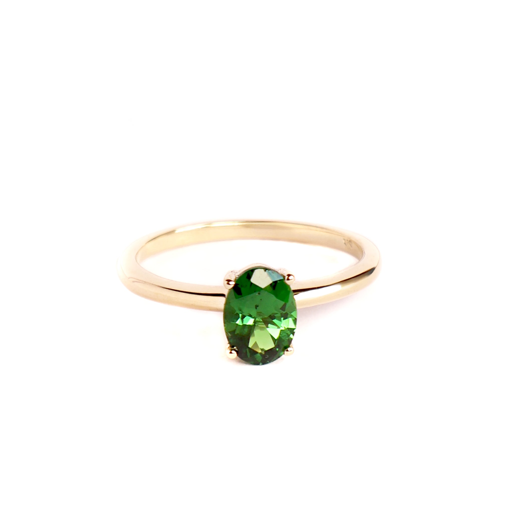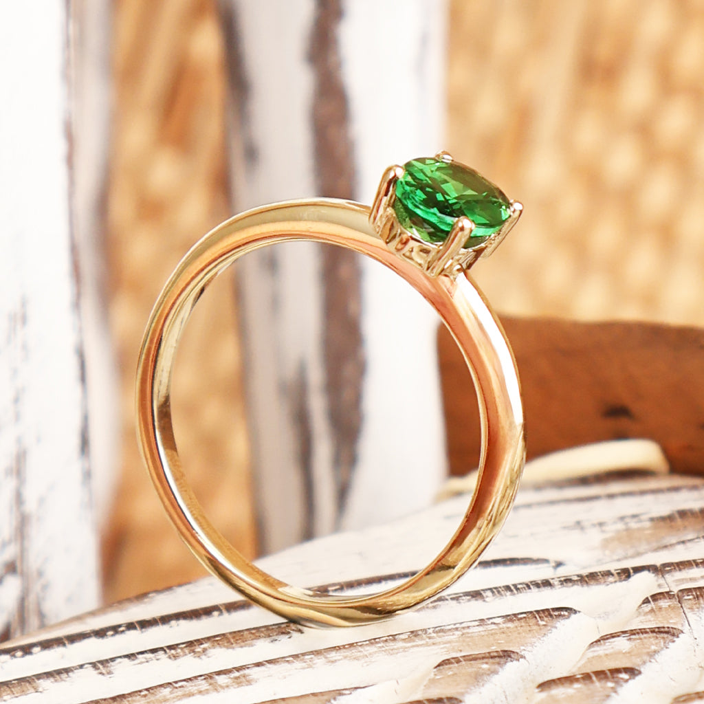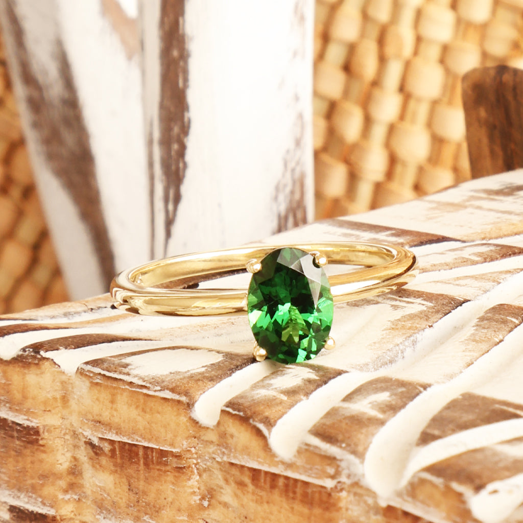 Classic Solitaire Oval Tsavorite Yellow Gold Ring