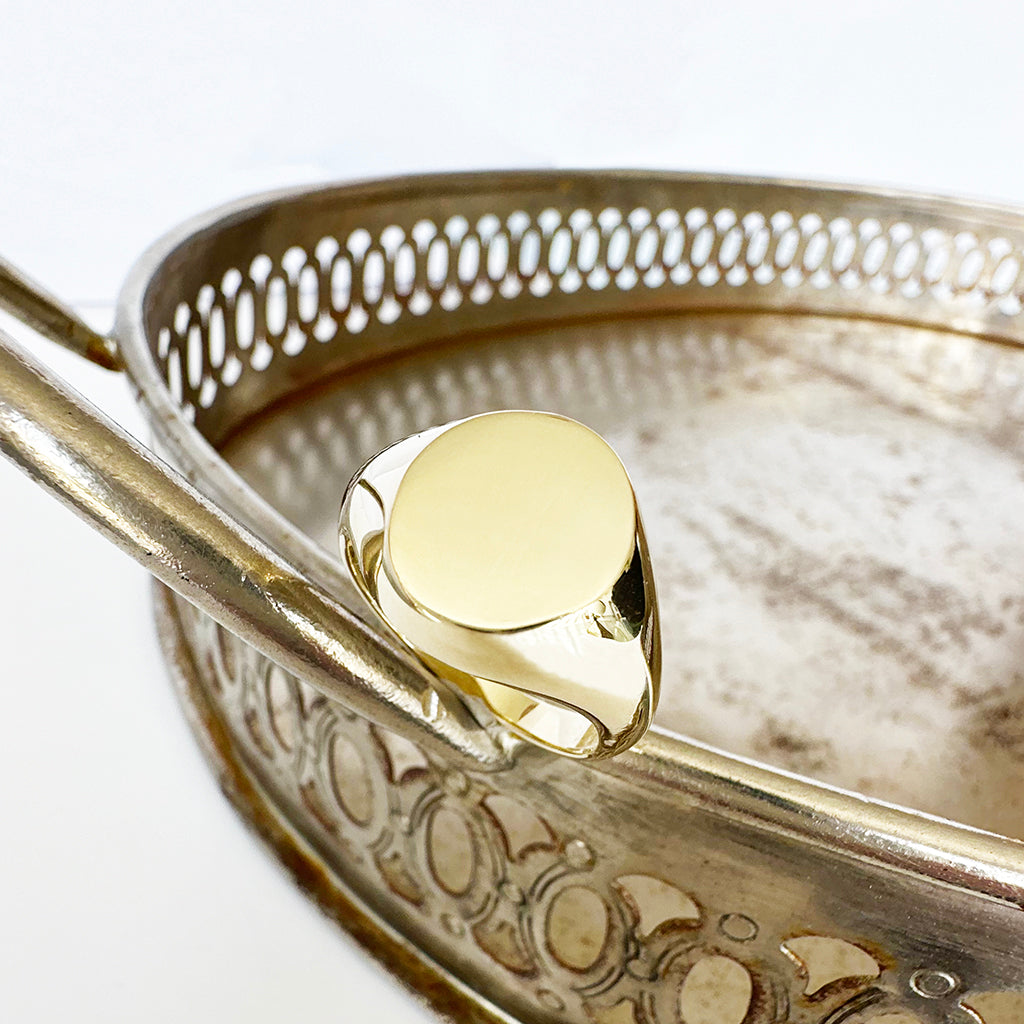 Classic Unisex Oval Front Yellow Gold Signet Ring