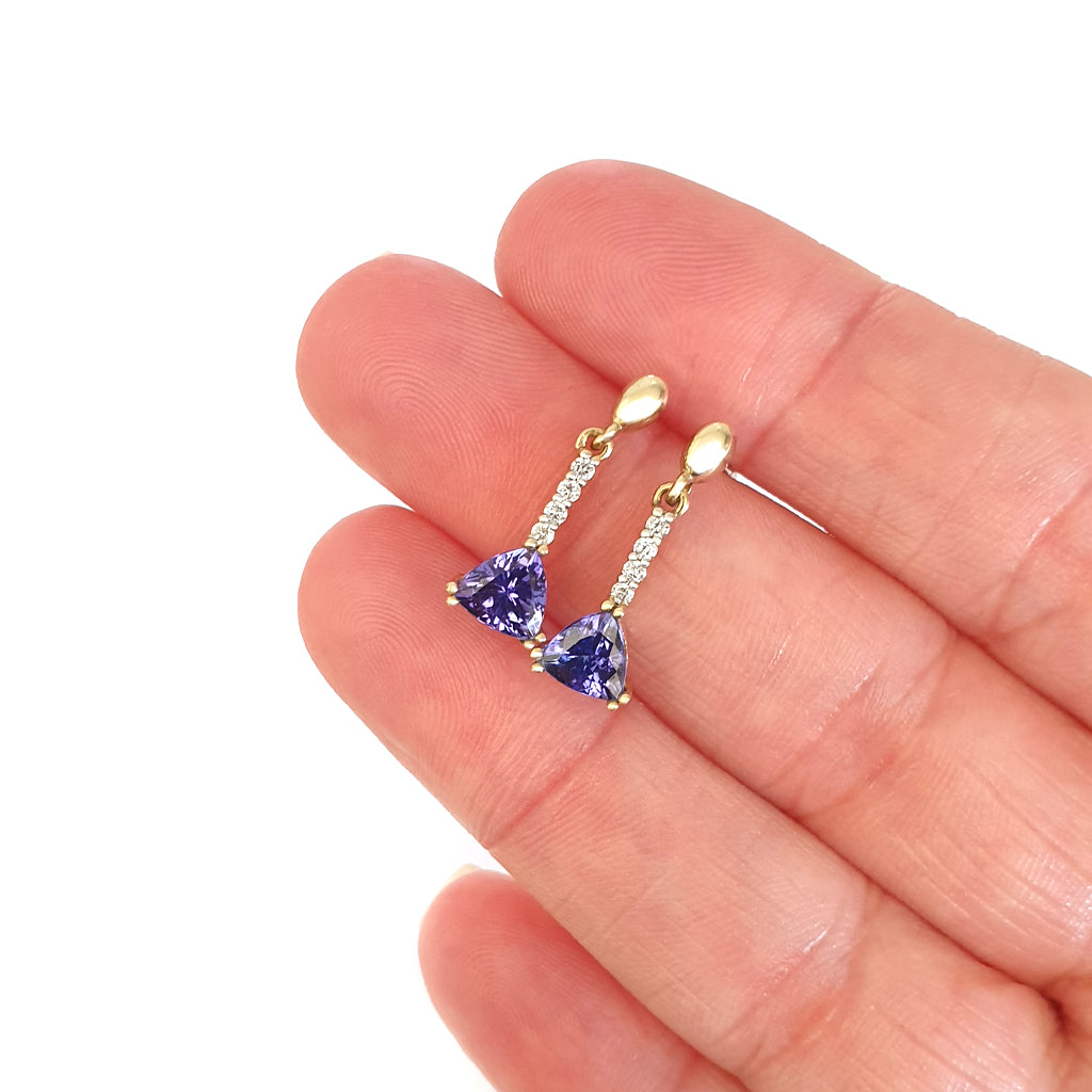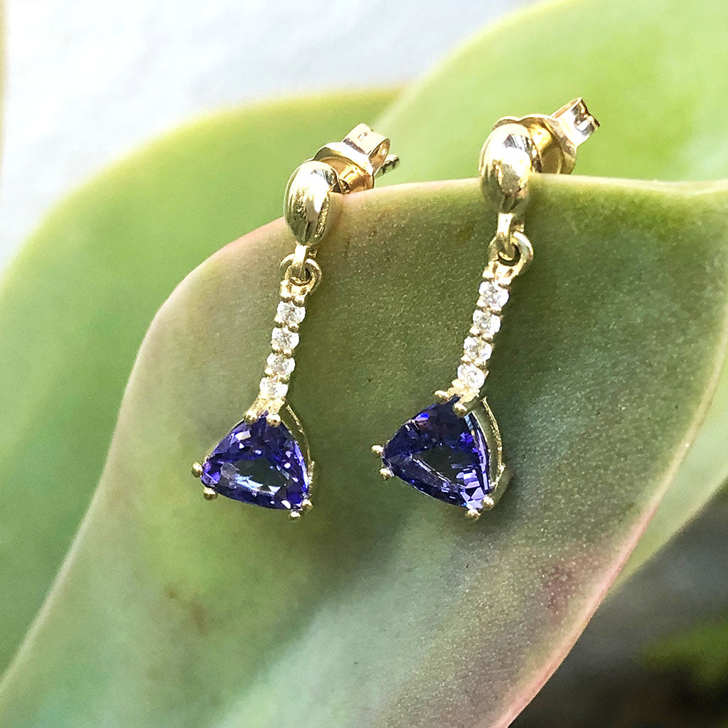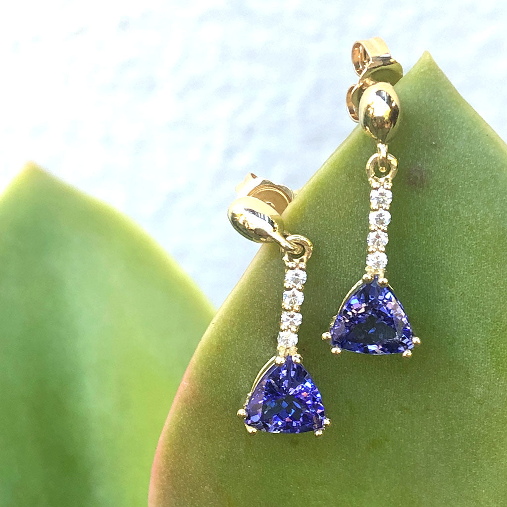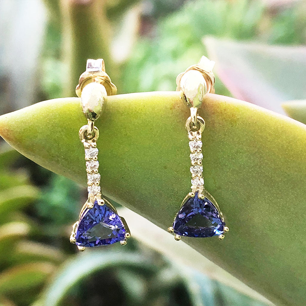 Classic Trilliant Cut Tanzanite and Diamond Drop Earrings