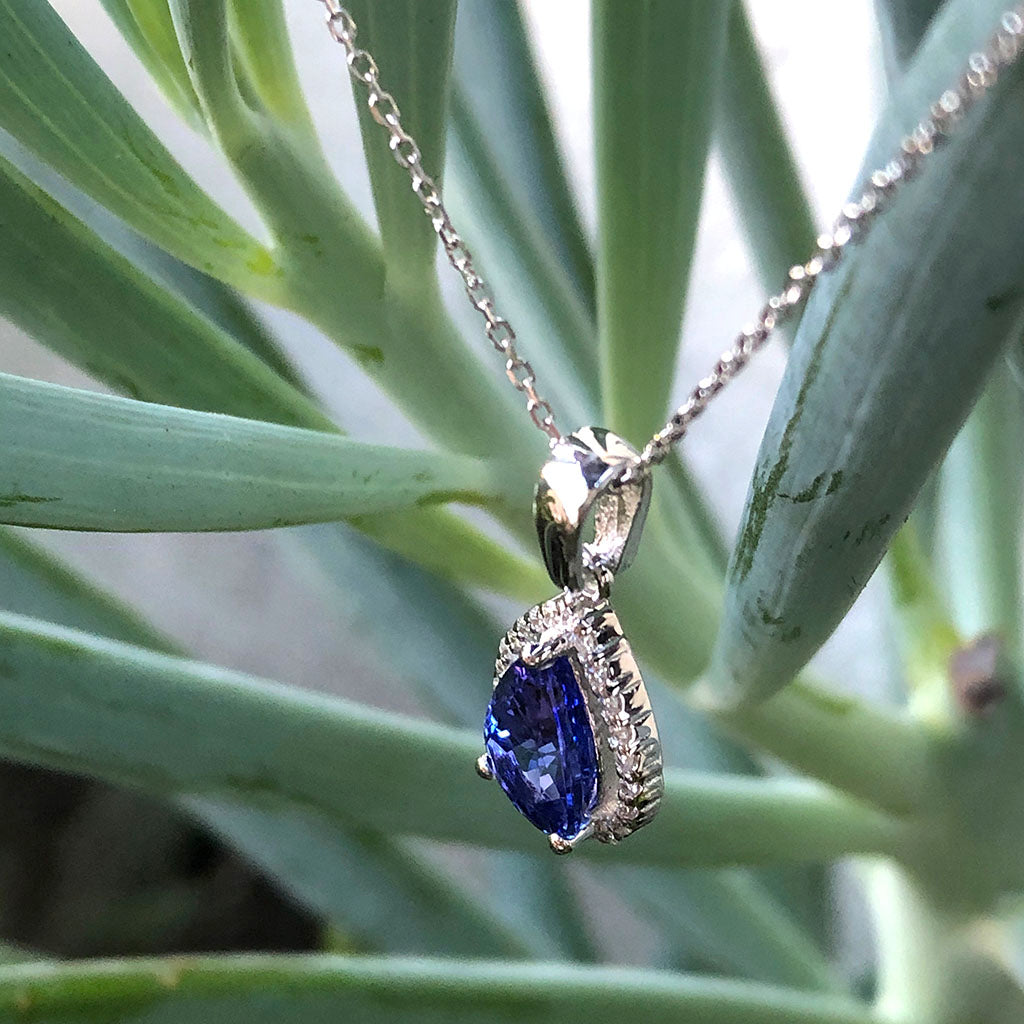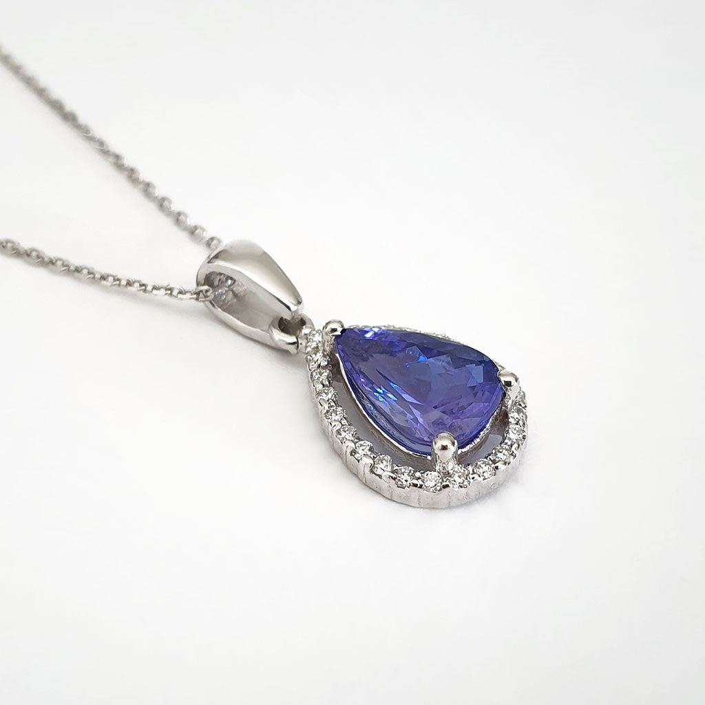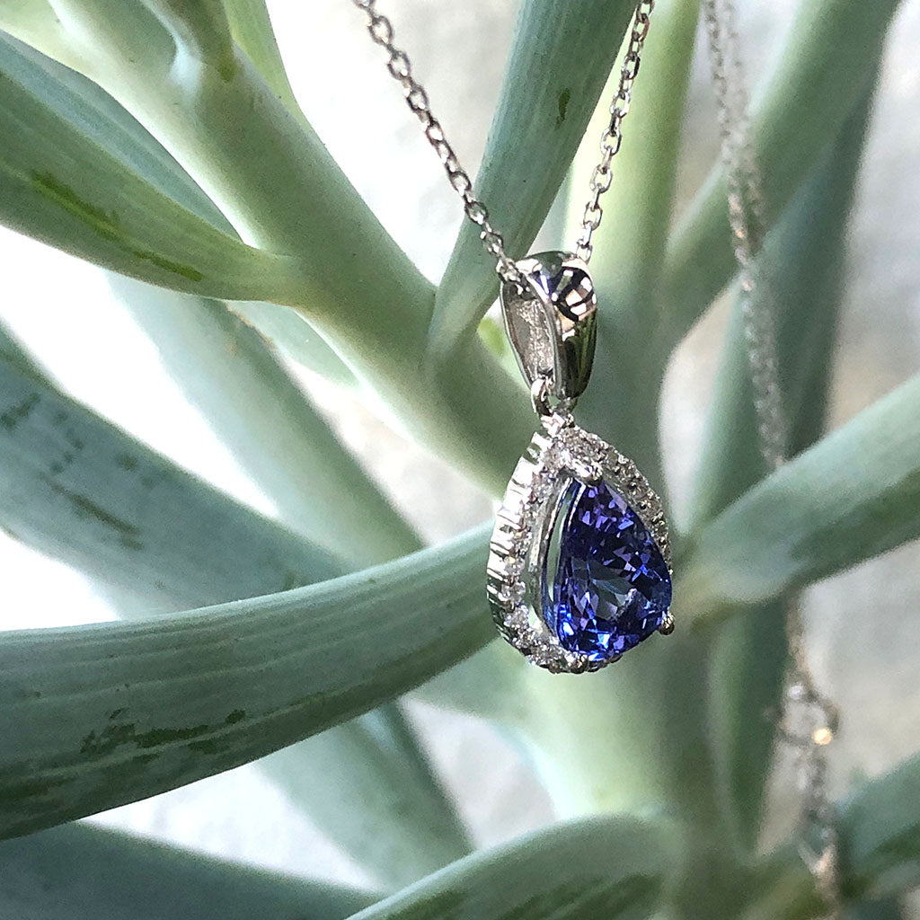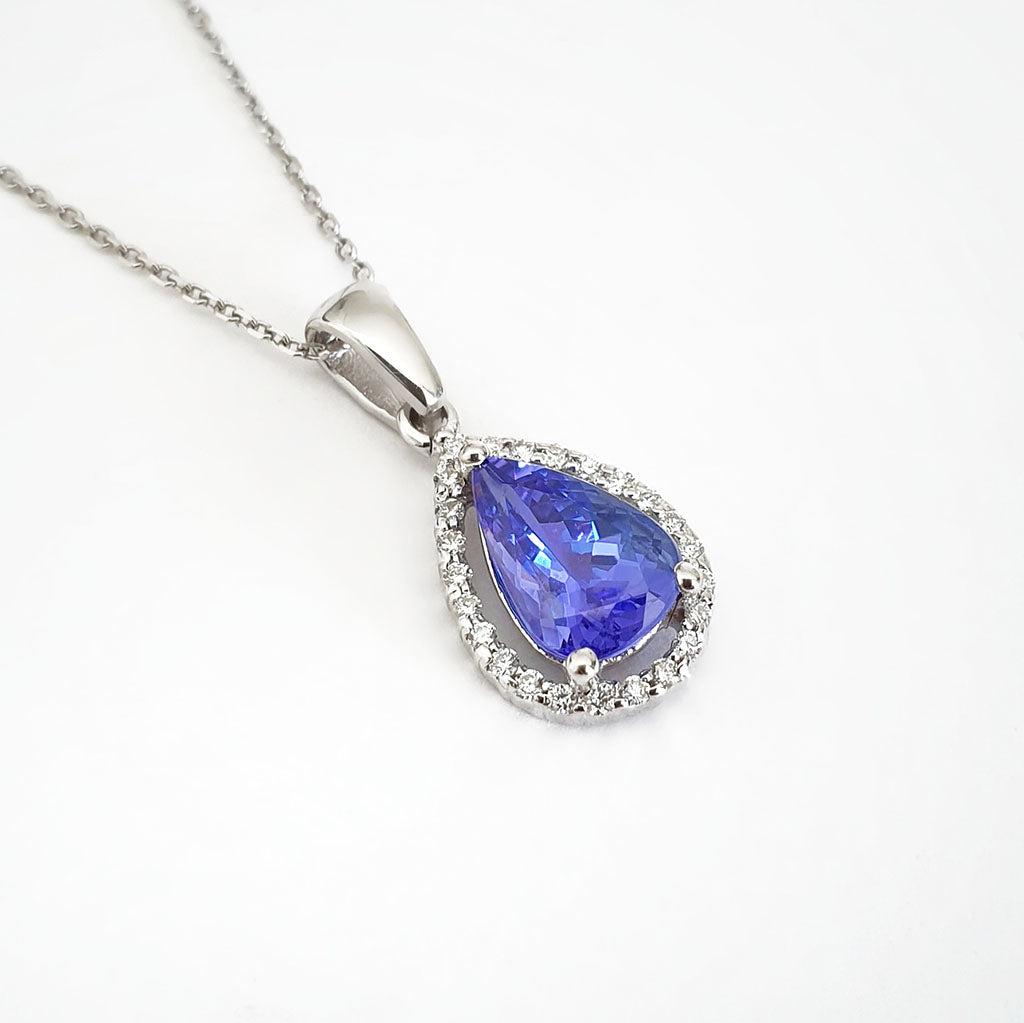 Pear Cut Tanzanite with Diamond Halo Pendant