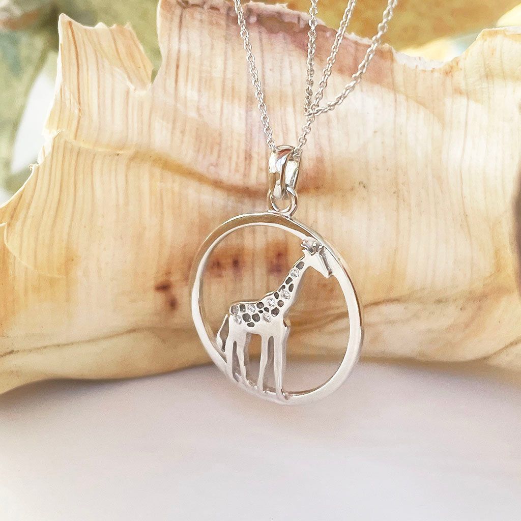 Contemporary Circular Giraffe Diamond and White Gold Pendant