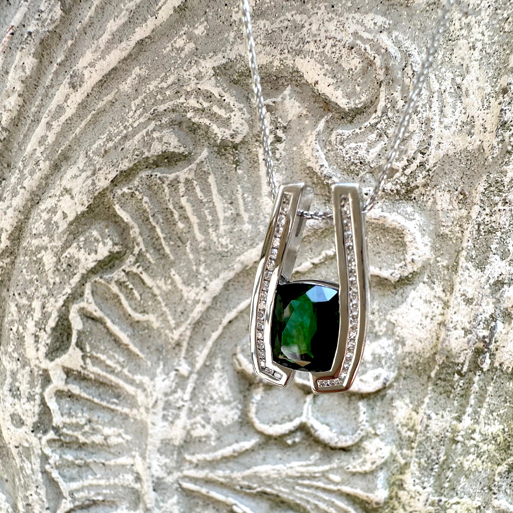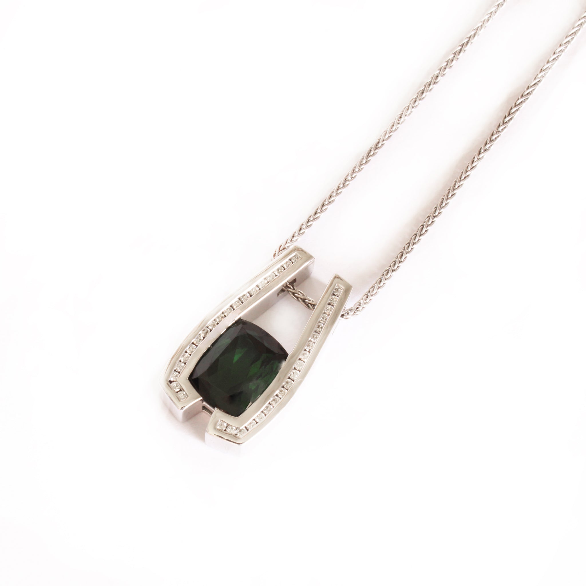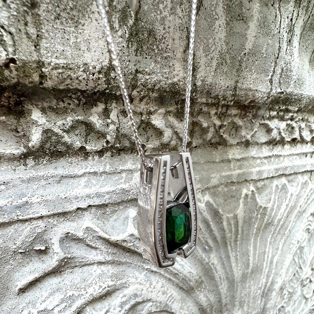 Contemporary Green Tourmaline and Diamond White Gold Pendant