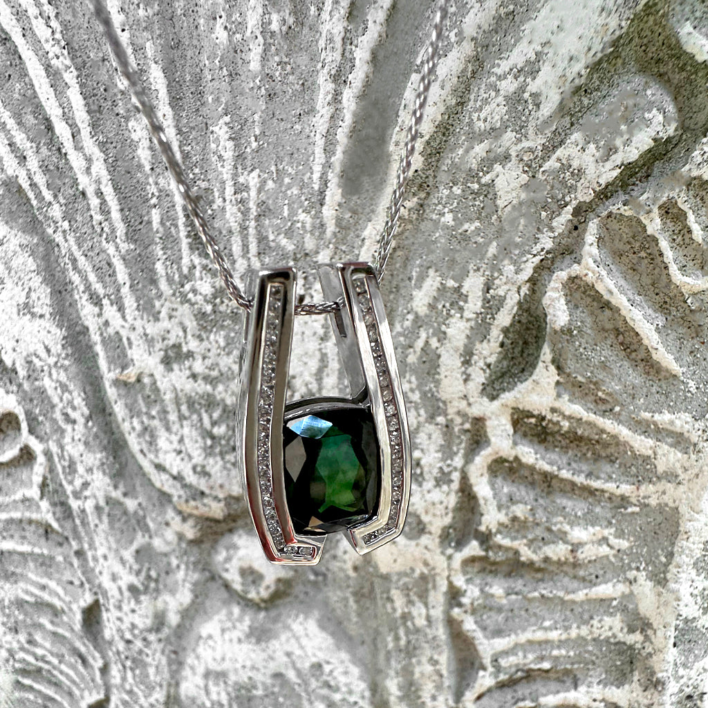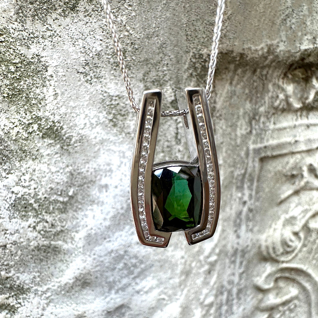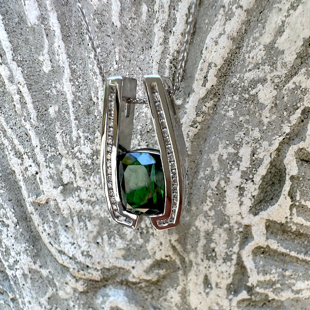 Contemporary Green Tourmaline and Diamond White Gold Pendant