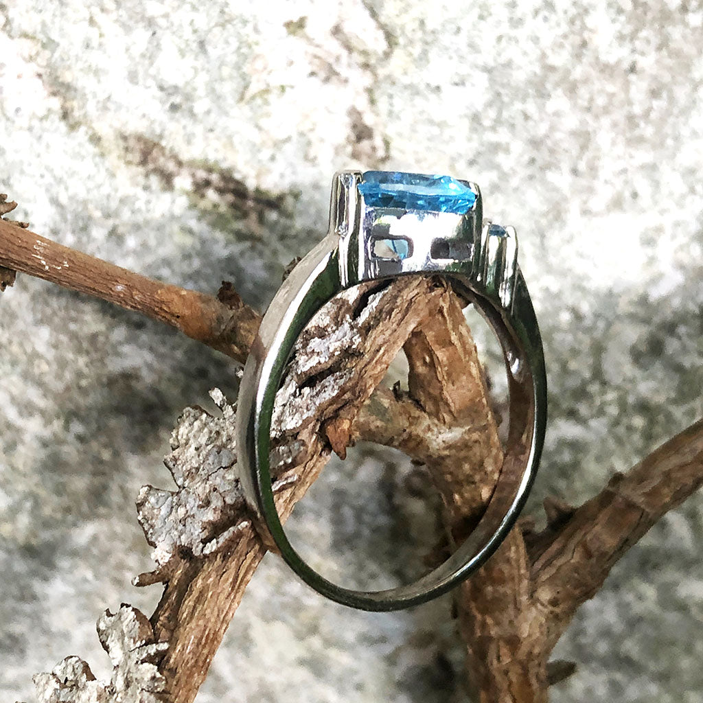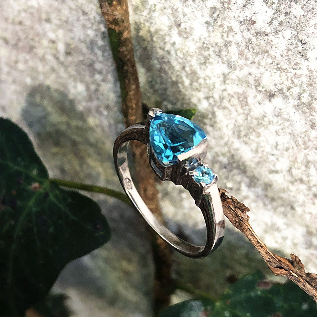 Trilliant Cut Blue Topaz With Blue Topaz Accent Ring