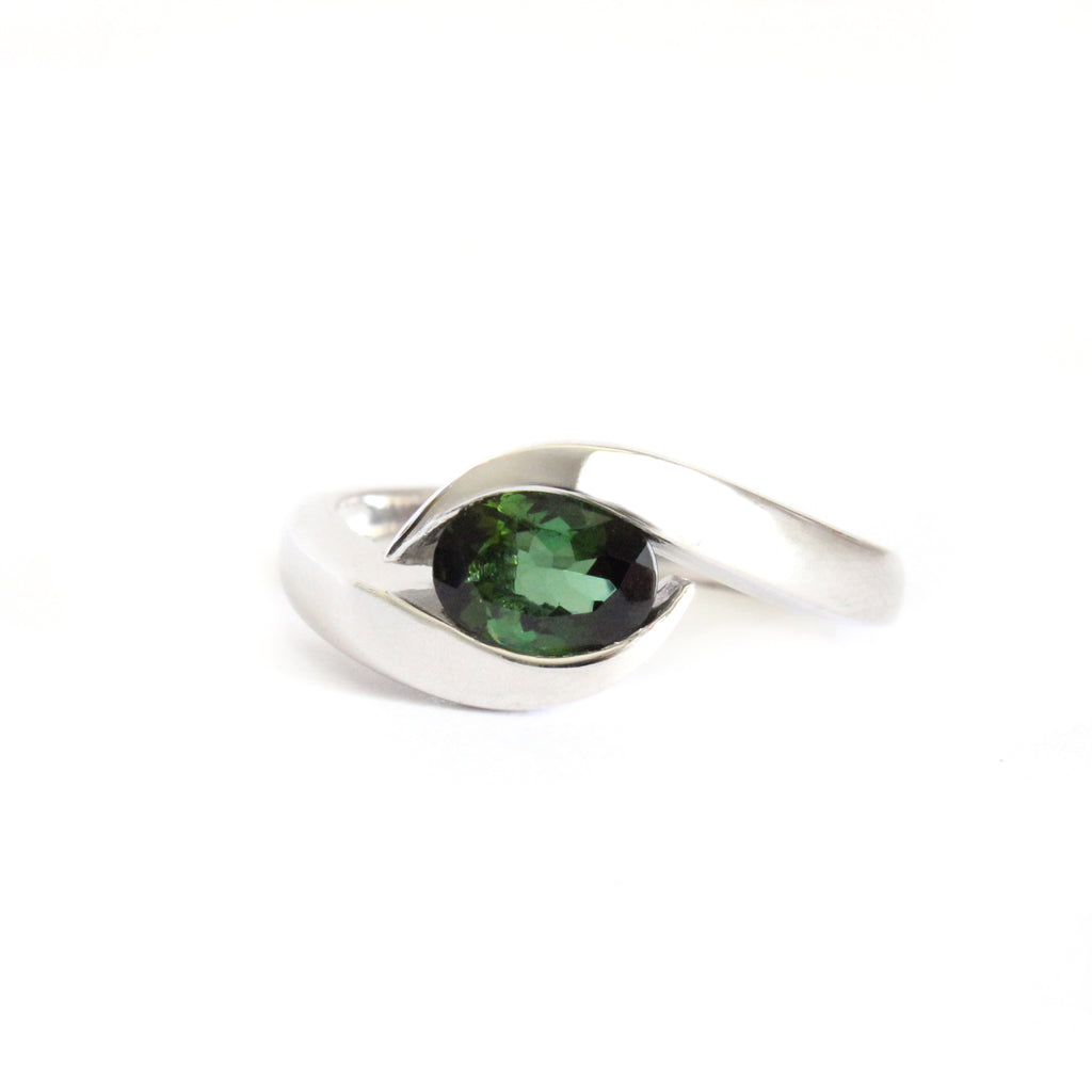 Curvaceous Split Band Oval Green Tourmaline White Gold Ring
