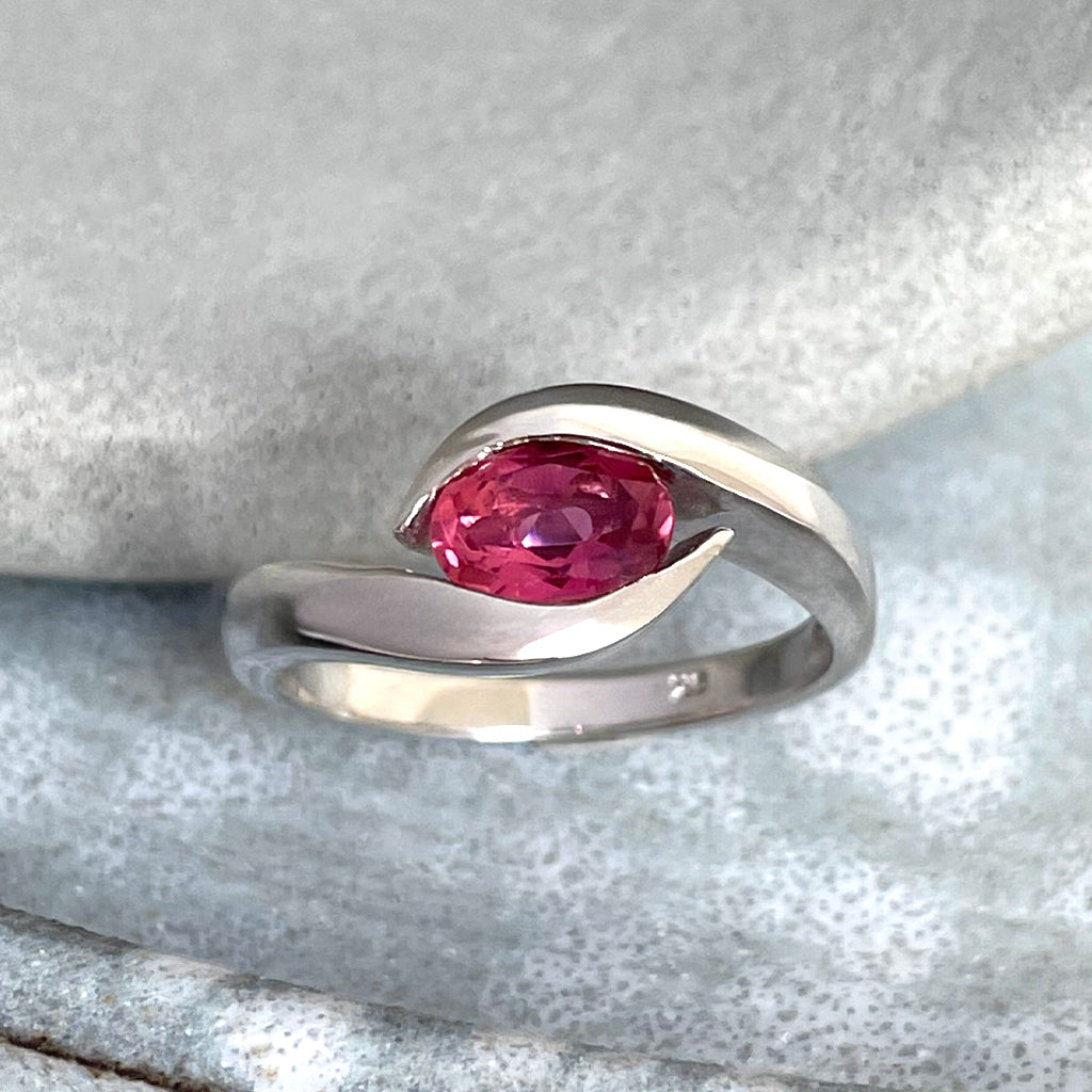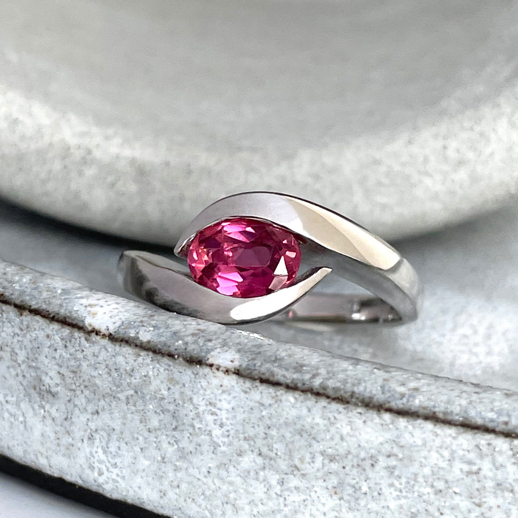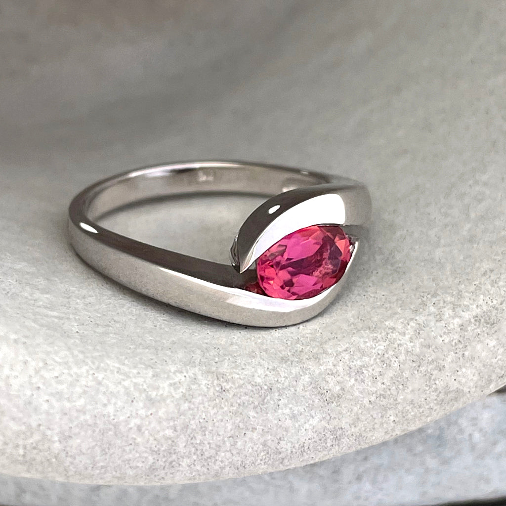 Curvaceous Split Band Oval Pink Tourmaline White Gold Ring