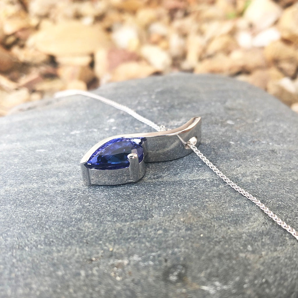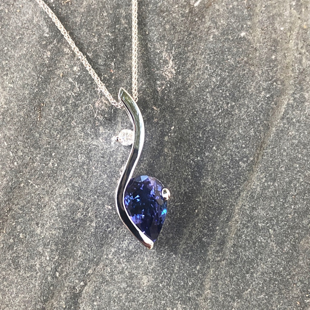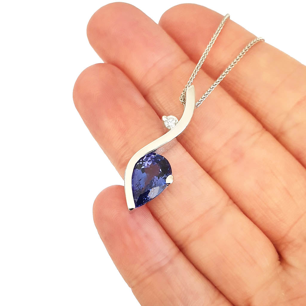 Pear Cut Tanzanite and Diamond Wave Pendant