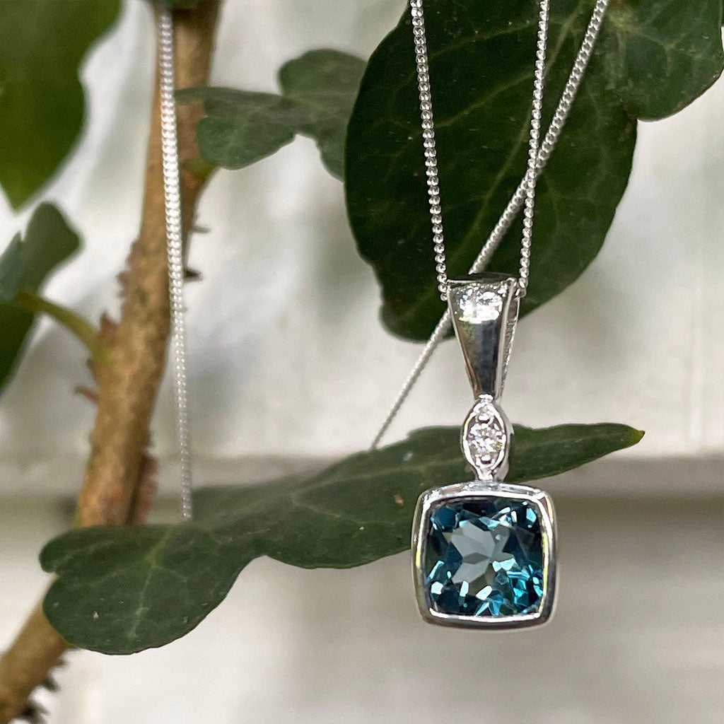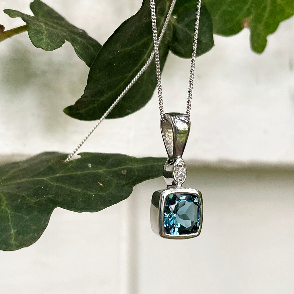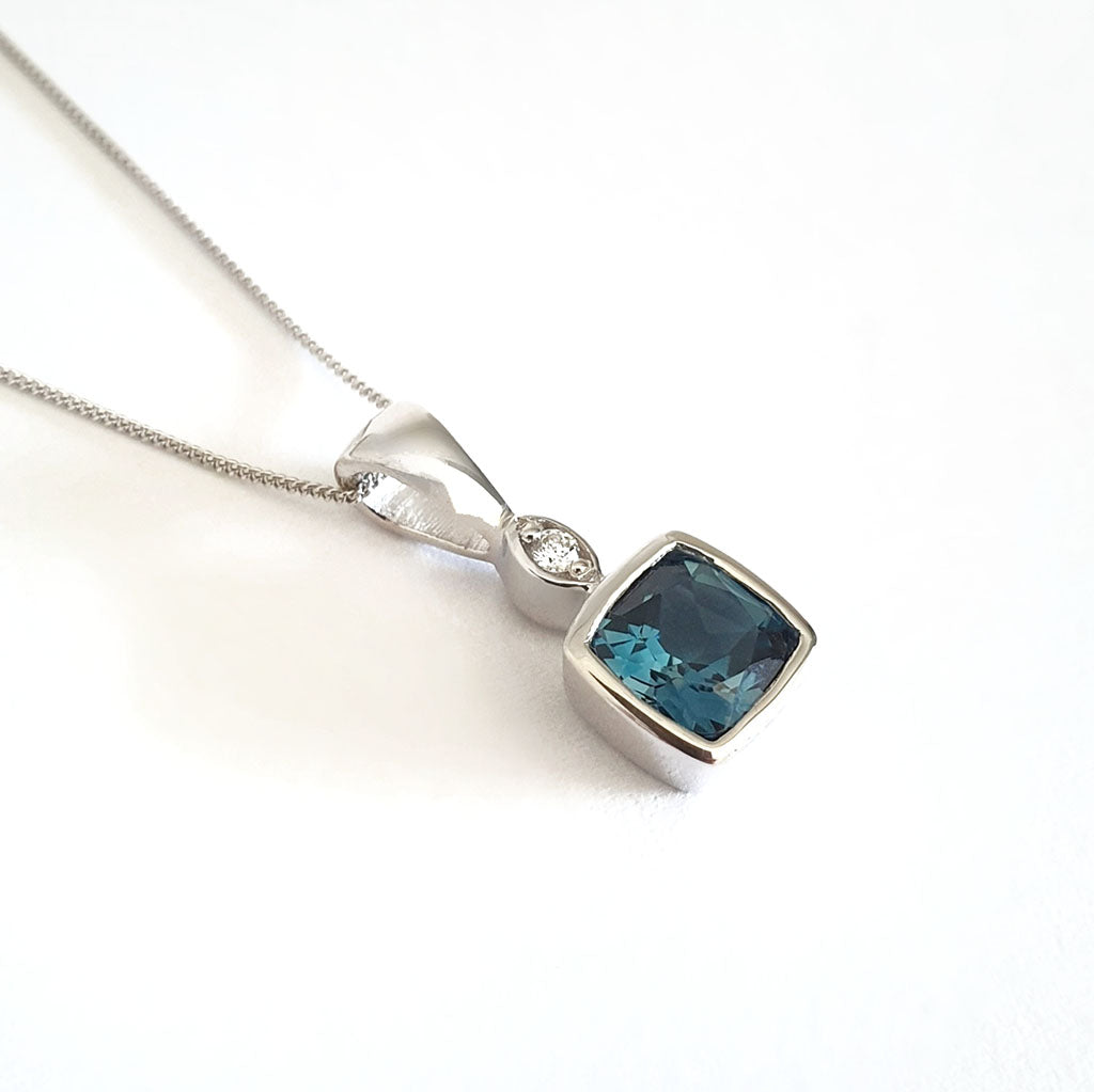 Cushion Bezel Set London Blue Topaz Pendant with Diamond accent