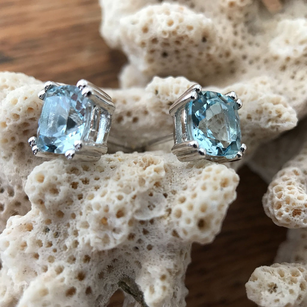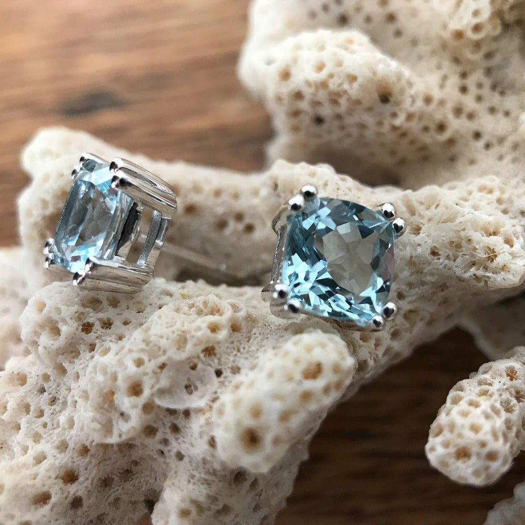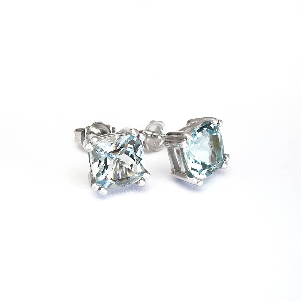 Cushion Cut Aquamarine Studs