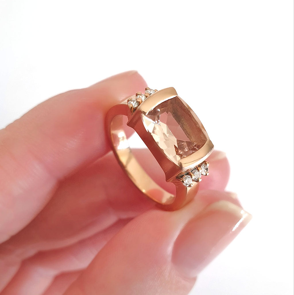 Cushion Cut Morganite, Diamond and Rose Gold Ring