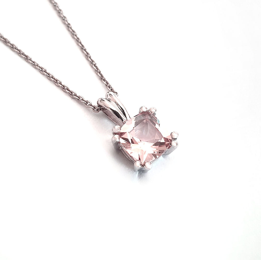 Cushion Cut Morganite Pendant with Fixed White Gold Bale