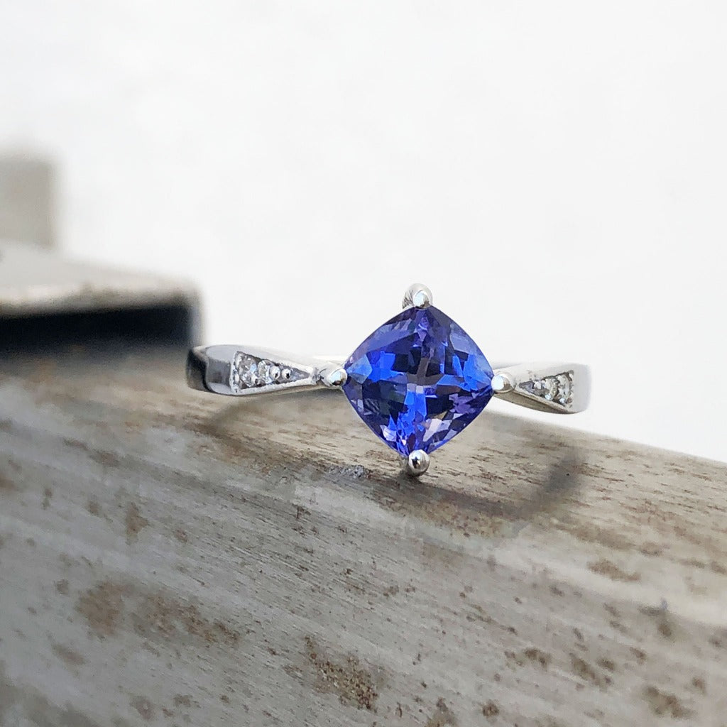 Delicate Cushion Cut Tanzanite Ring with Diamond Accents