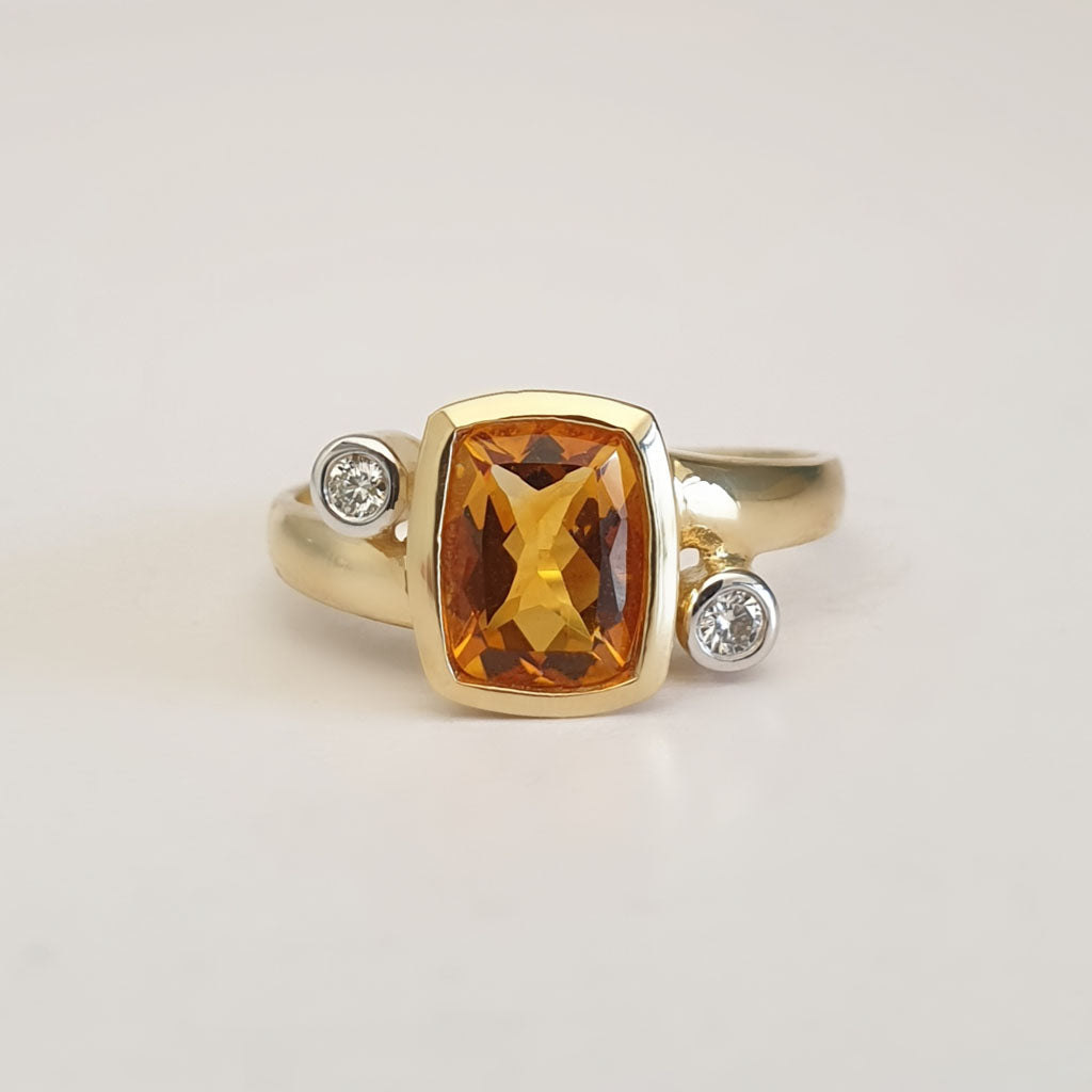Cushion Cut Citrine with Tube Set Diamond Accents Ring