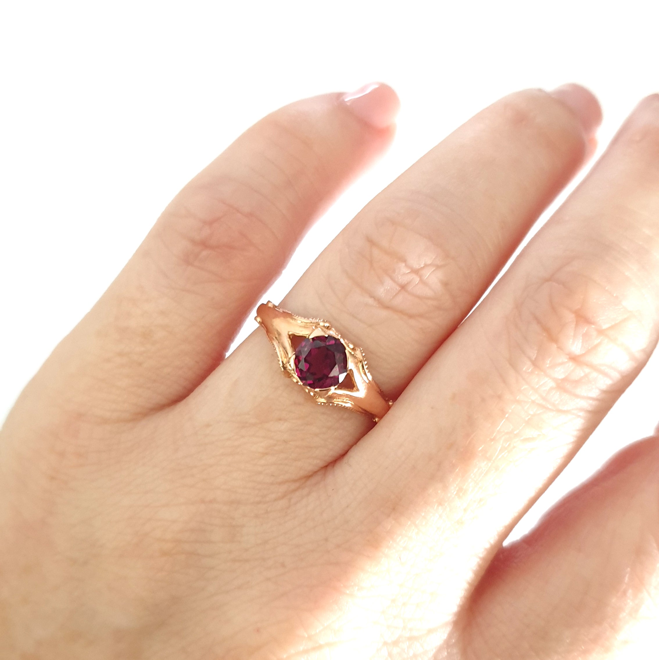 Decorative Filigree and Milgrain Grape Garnet Rose Gold Ring