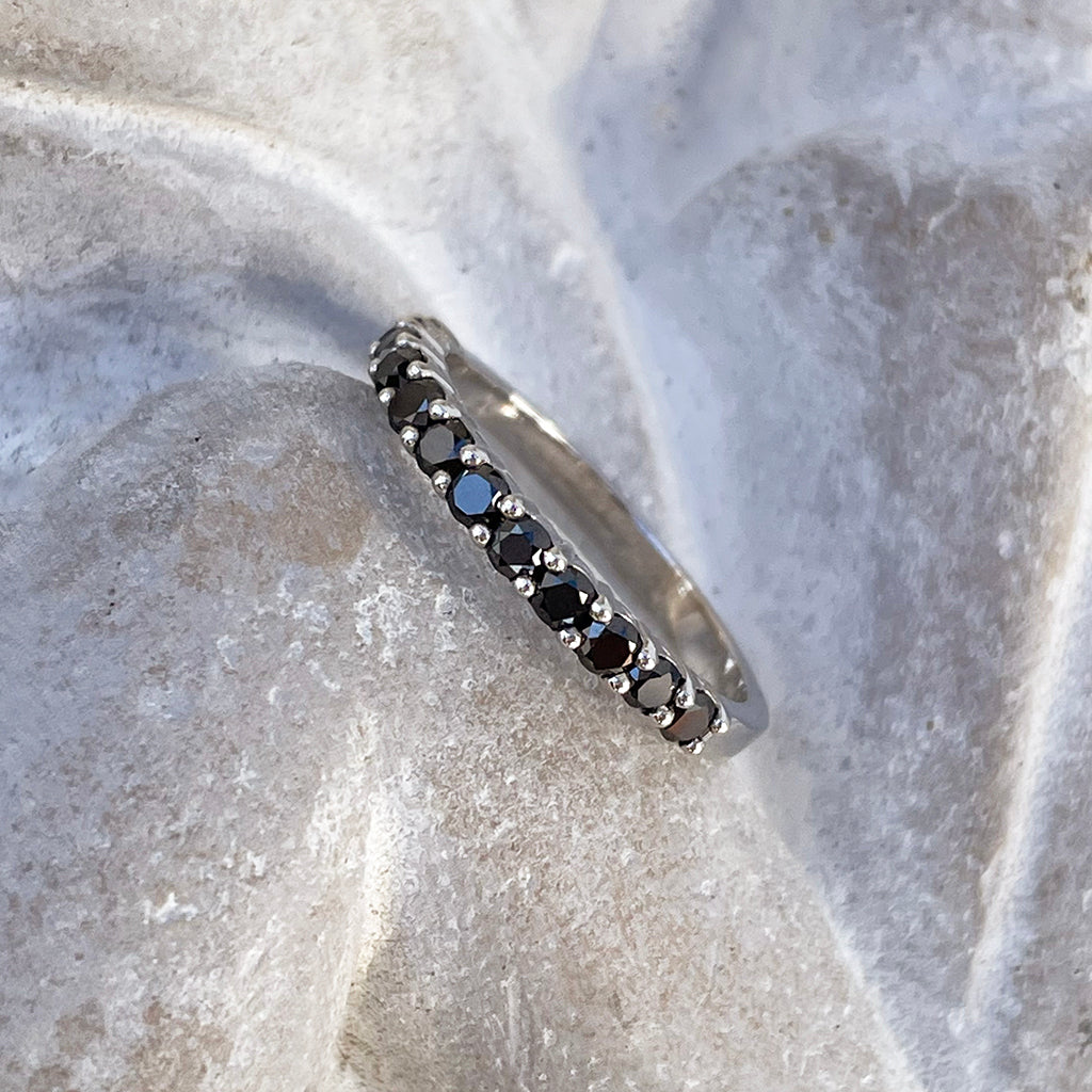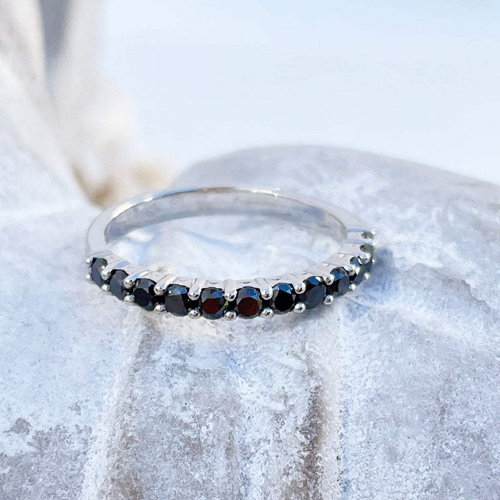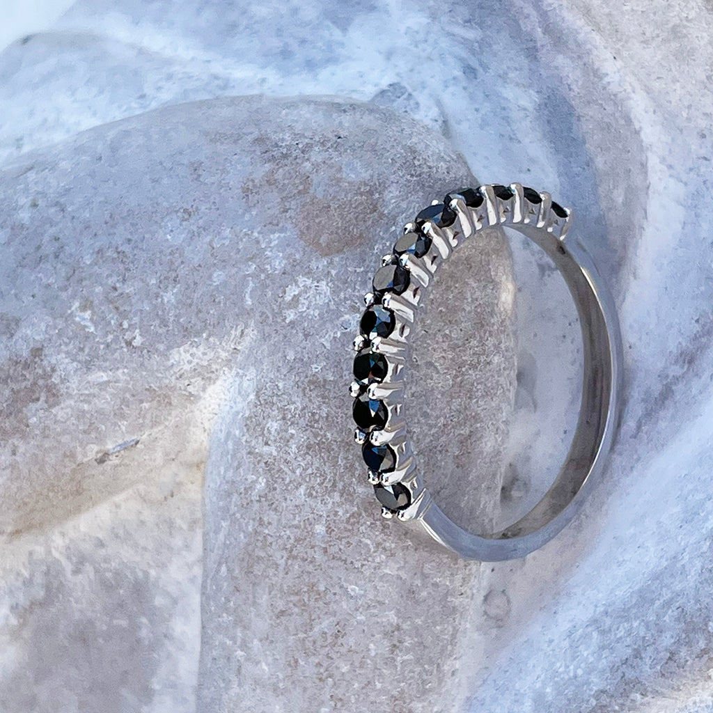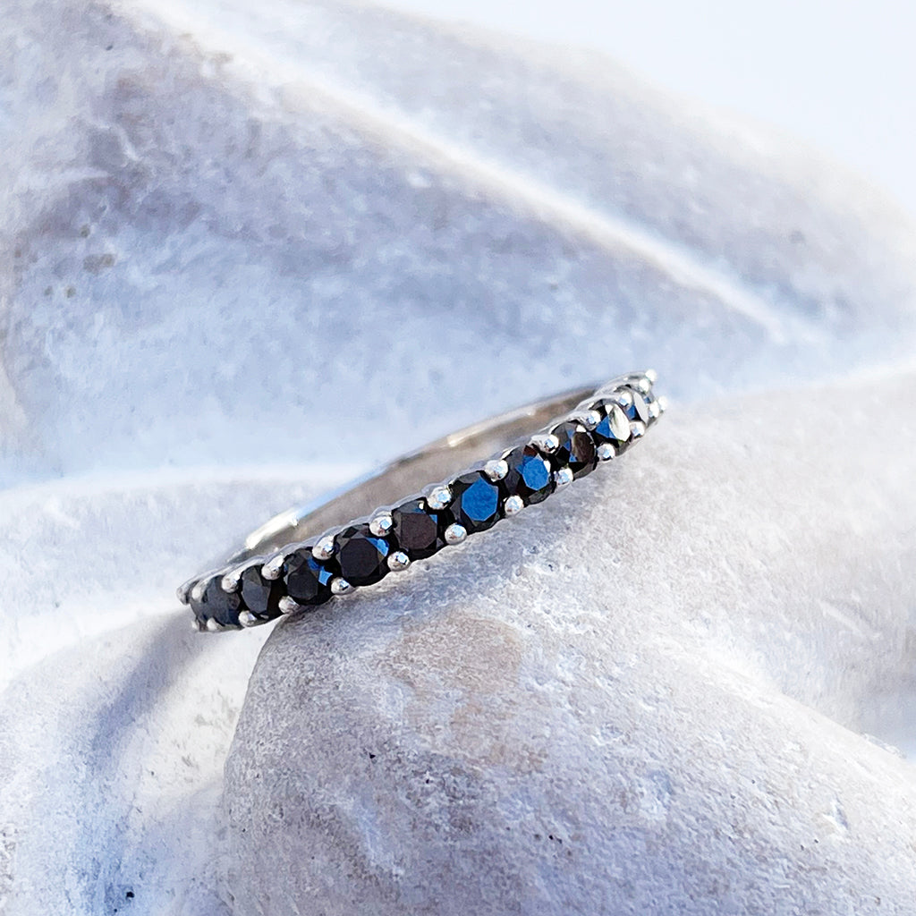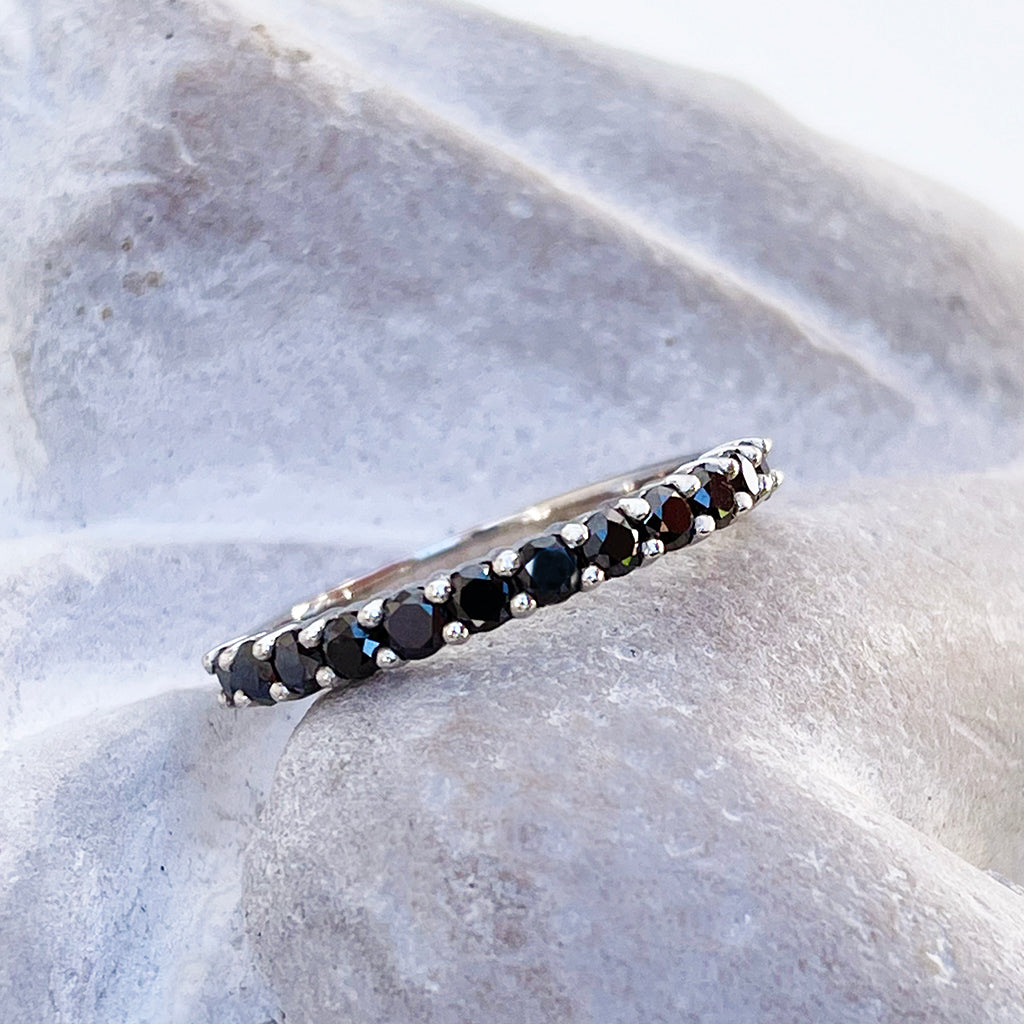 Delicate Eternity Styled Black Diamond and White Gold Ring