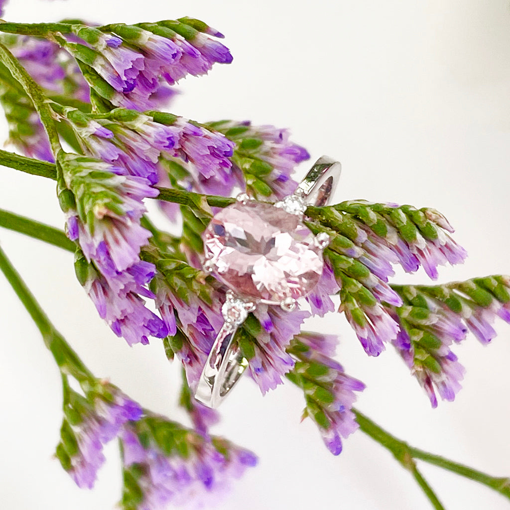 Delicate Oval Pink Morganite and Diamond Accent Ring