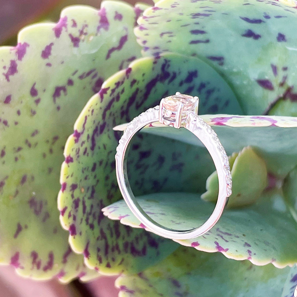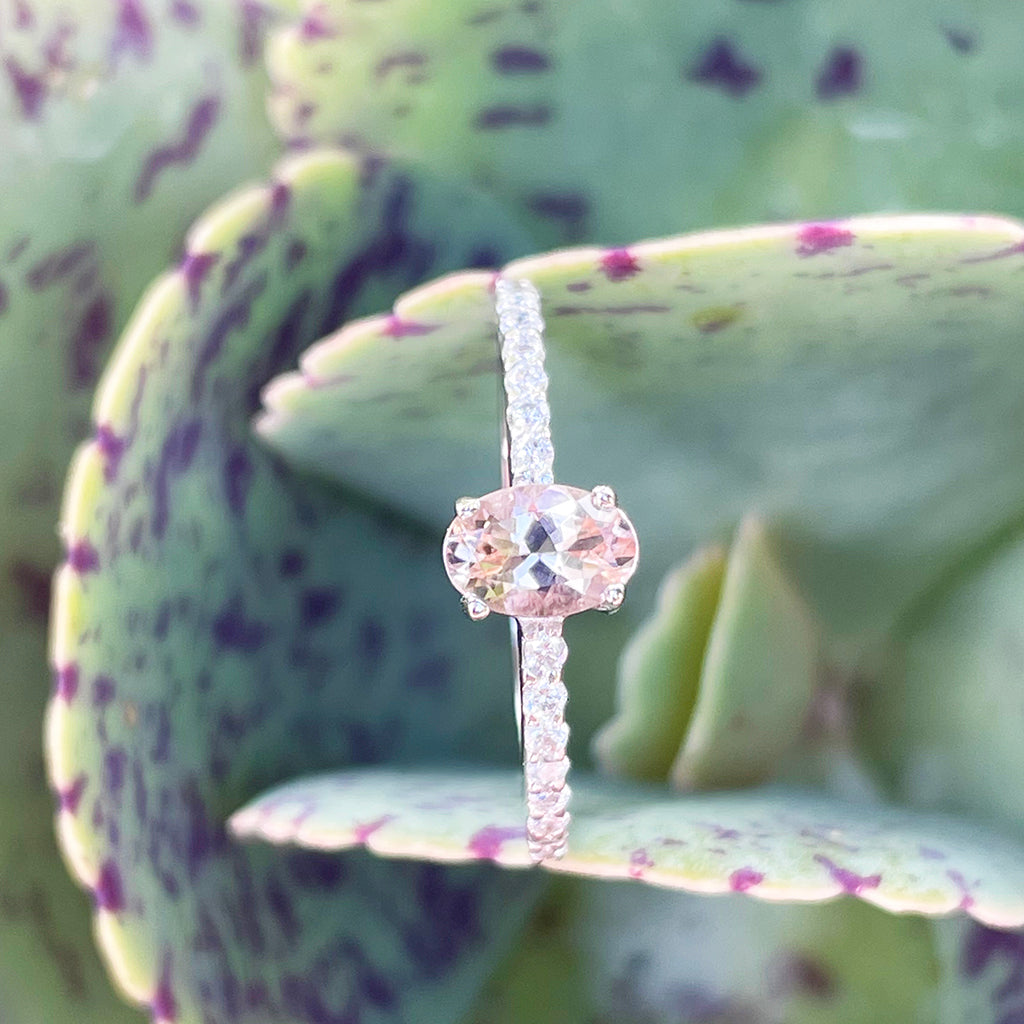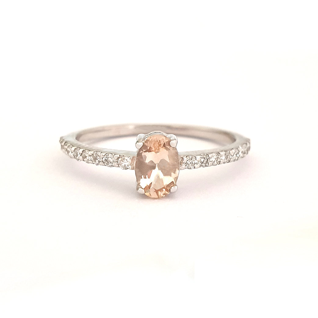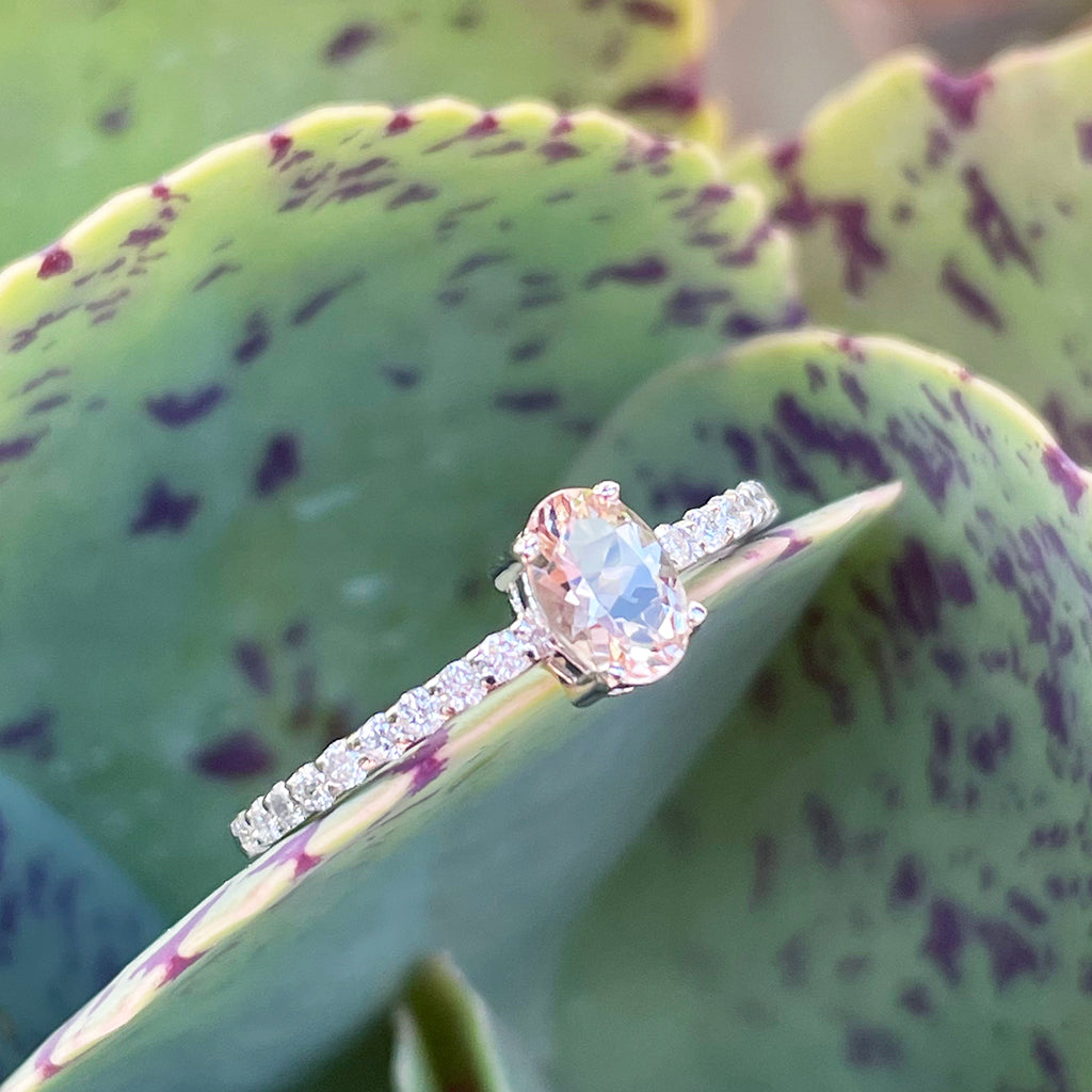 Delicate Peach Oval Morganite with Diamond Band Ring