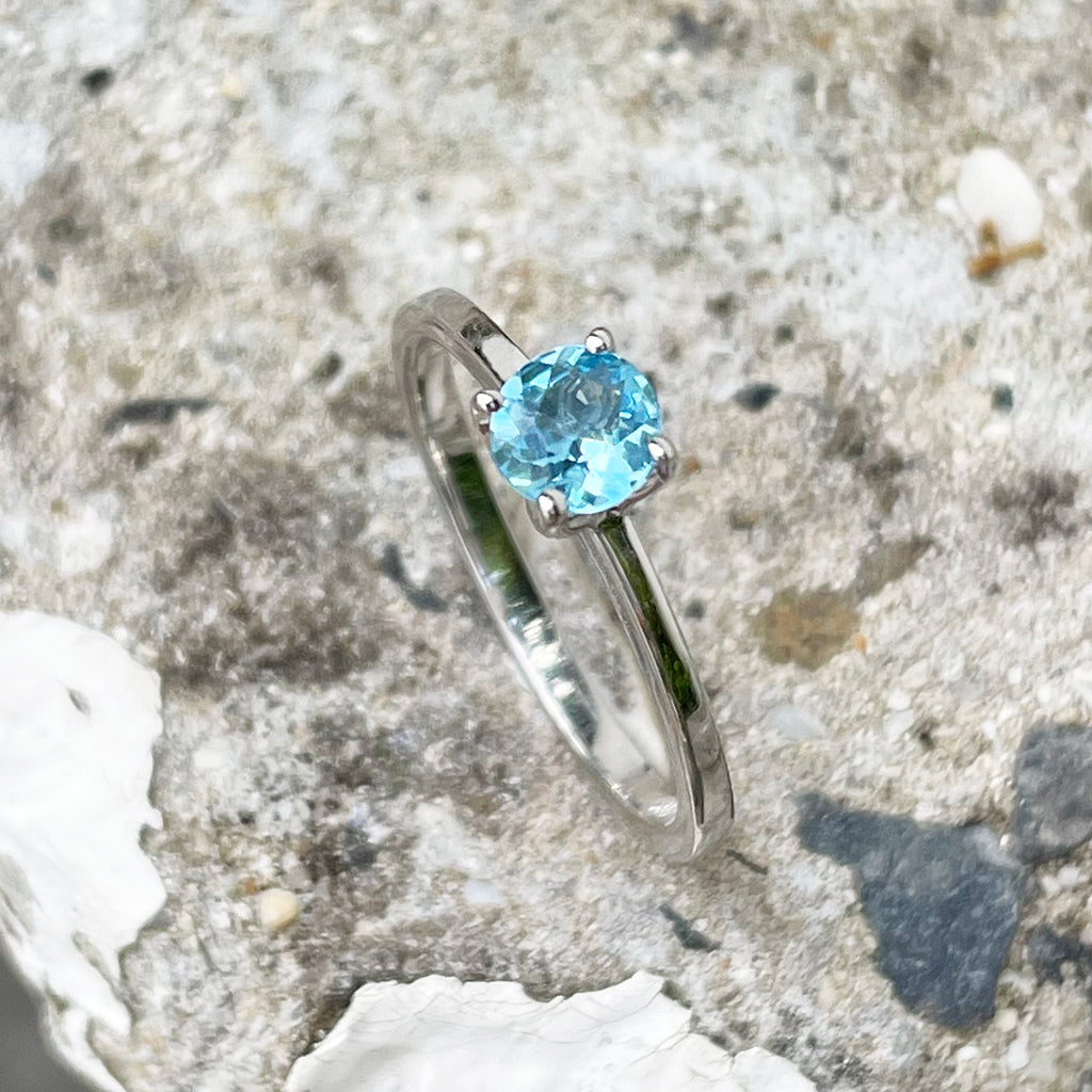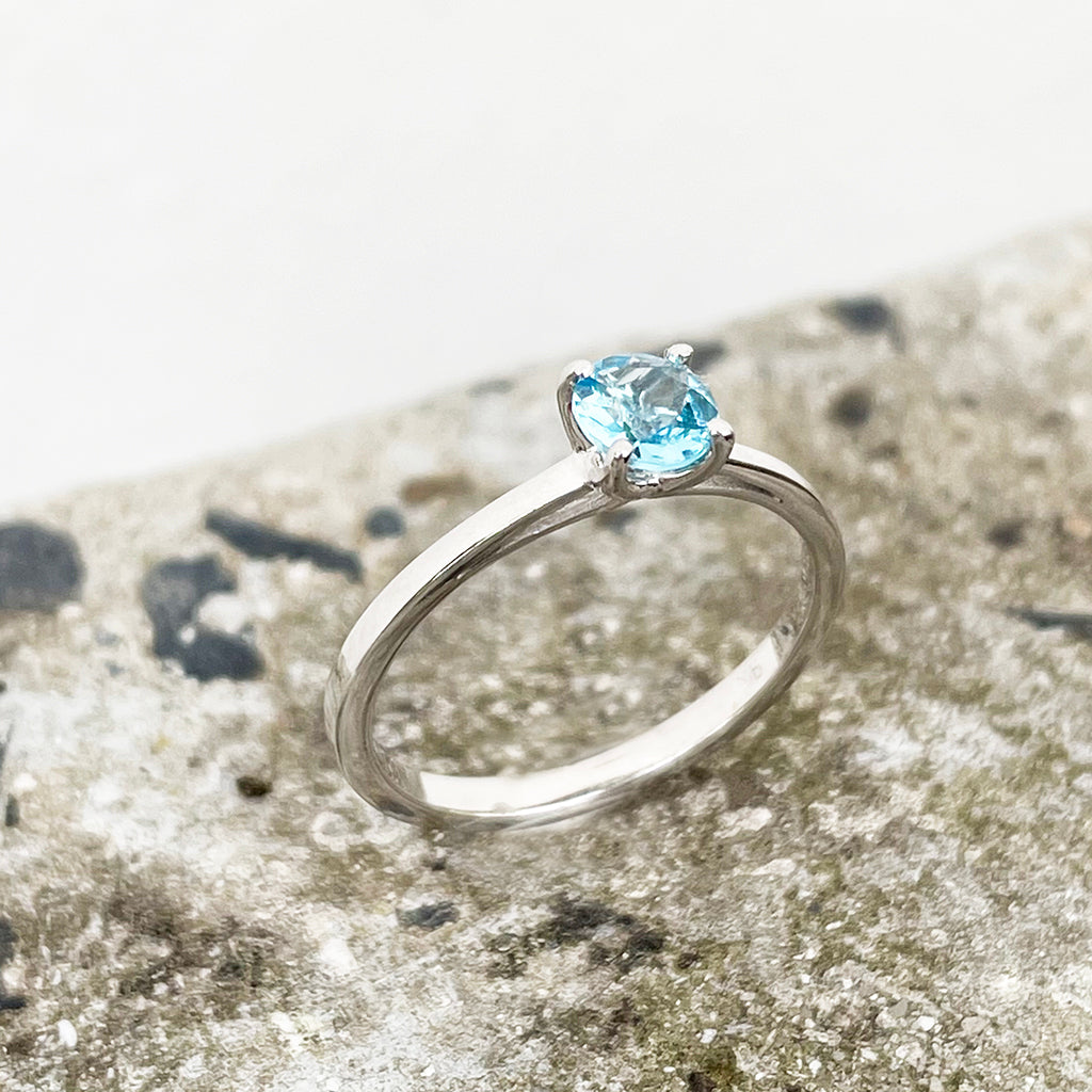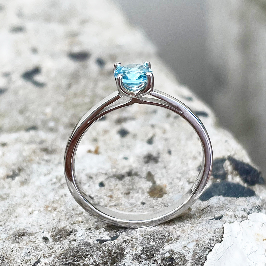 Delicate Solitaire Blue Topaz Four Claw White Gold Ring