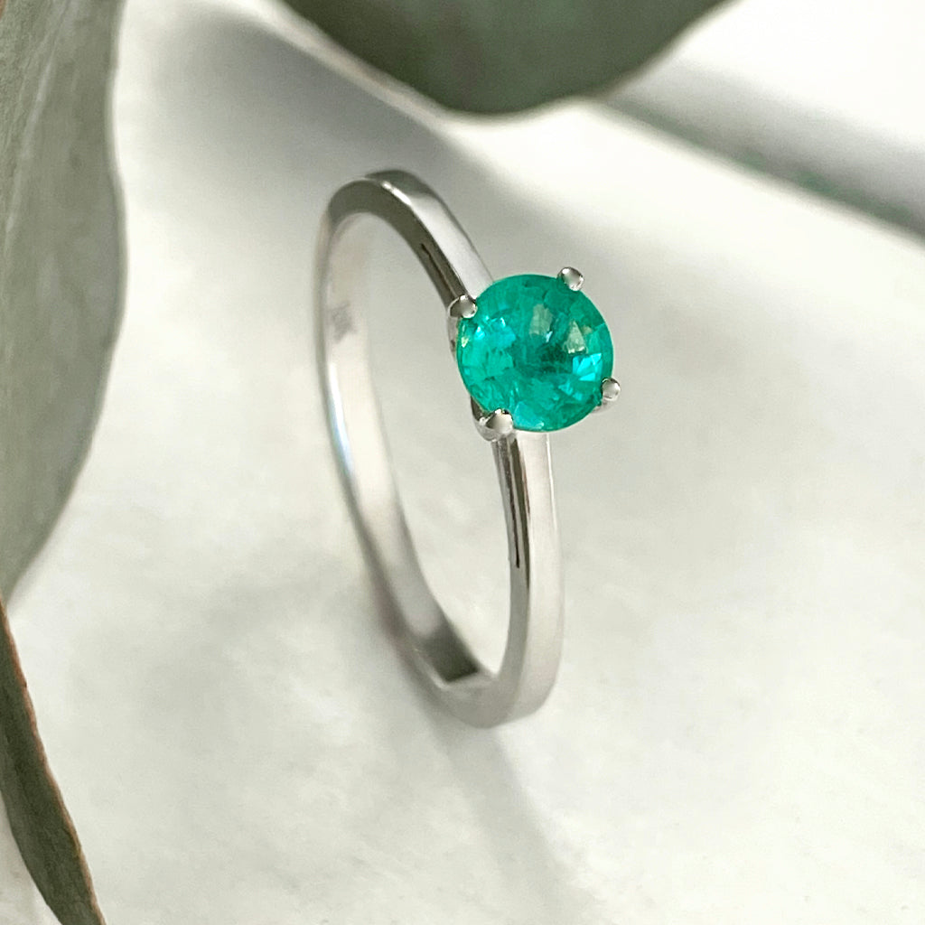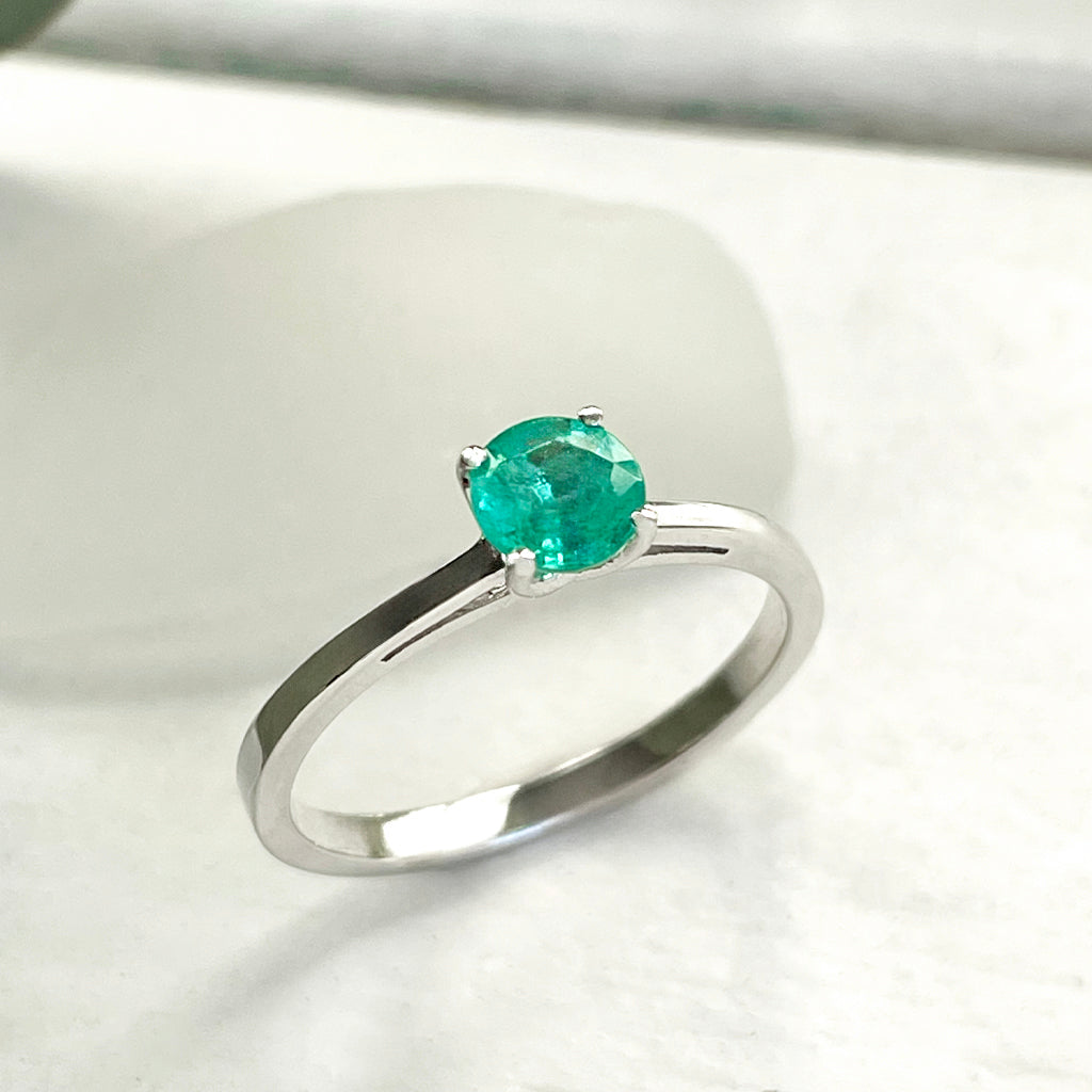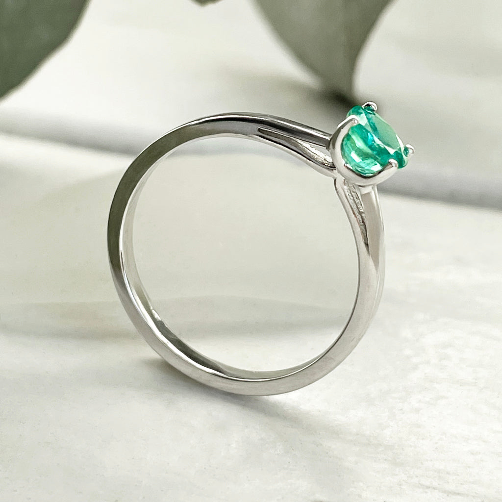 Delicate Solitaire Emerald Four Claw White Gold Ring